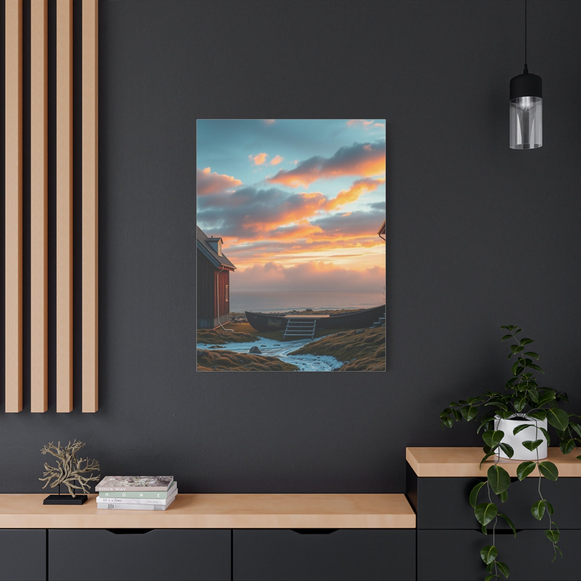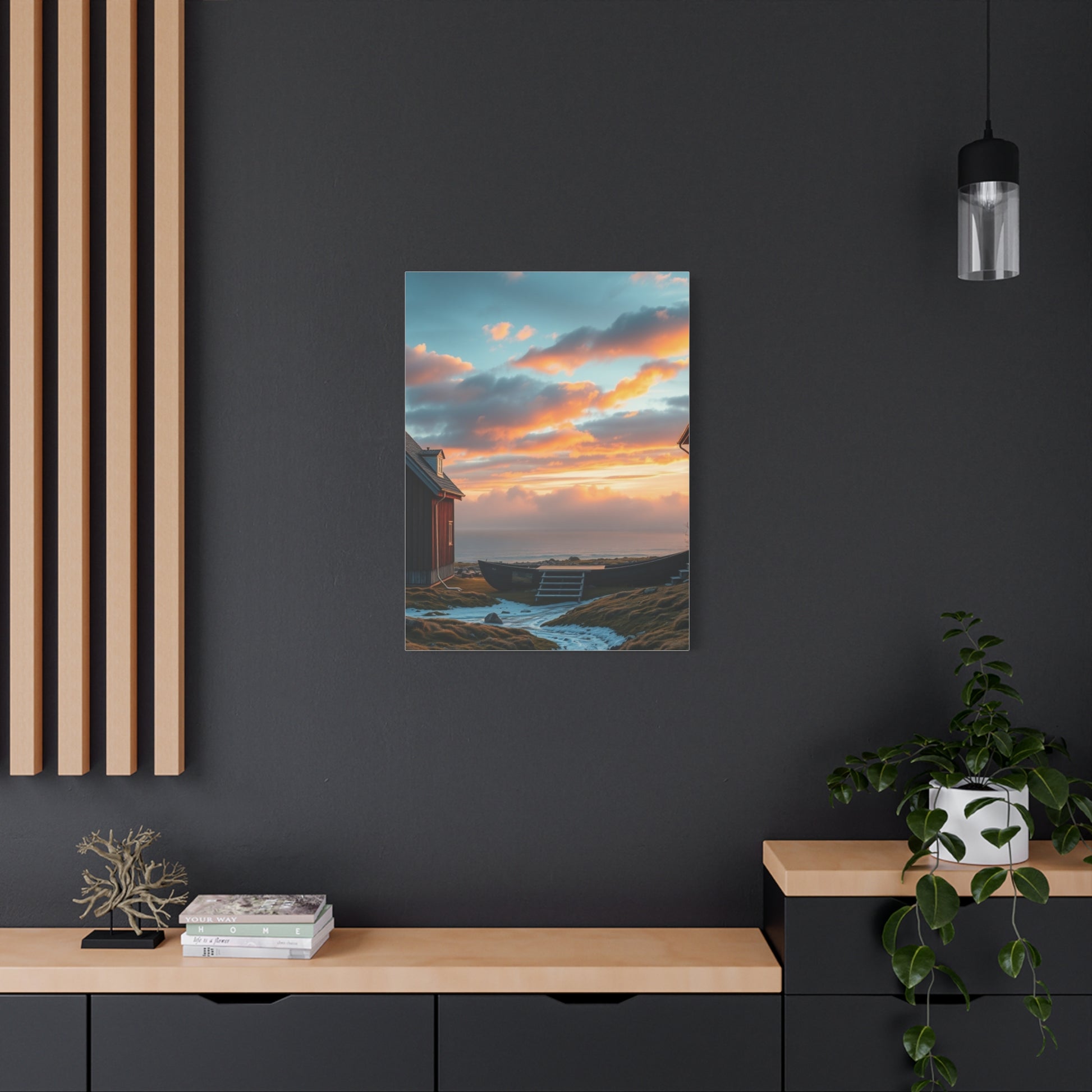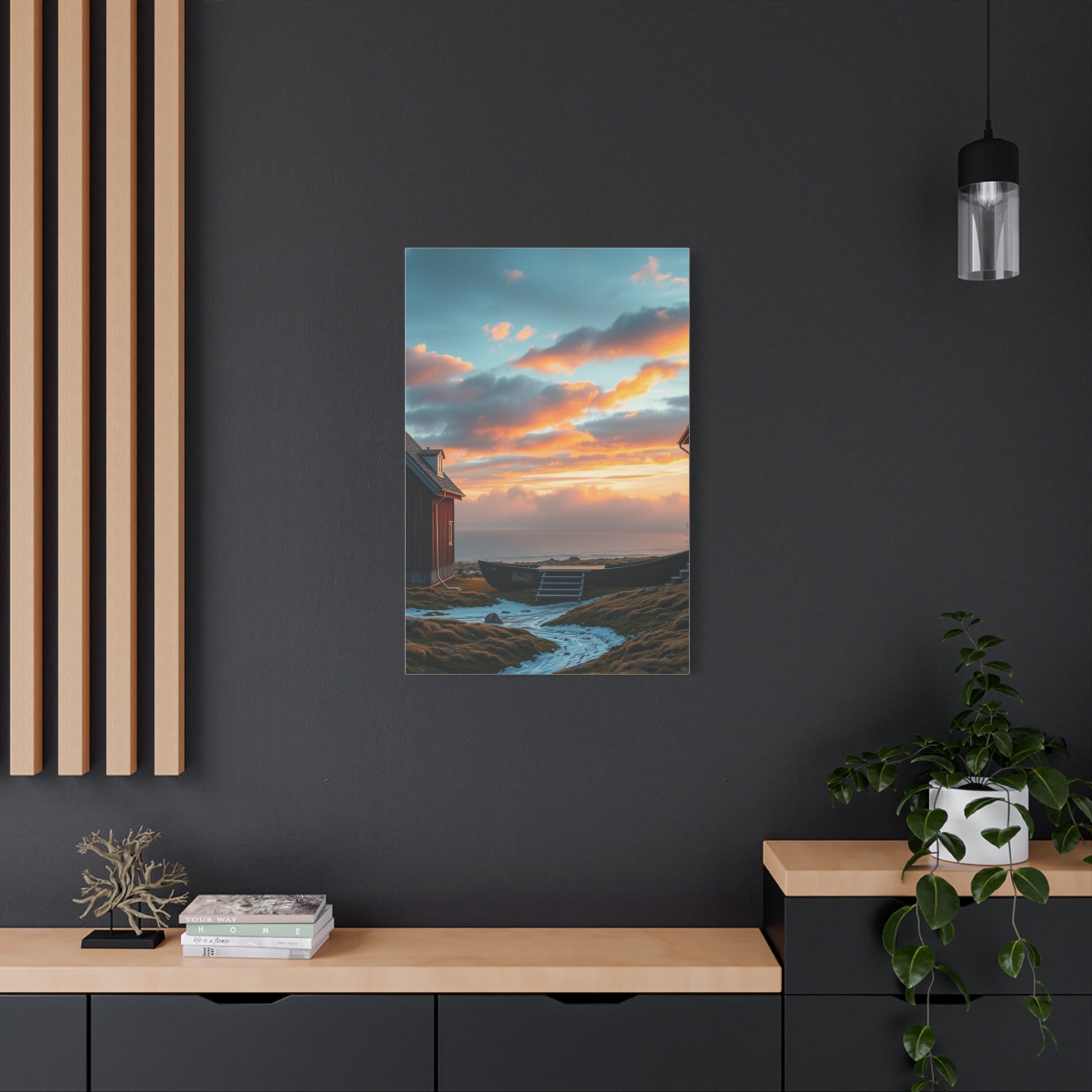 - Materials: cotton and polyester composite (canvas), pine wood (frame)