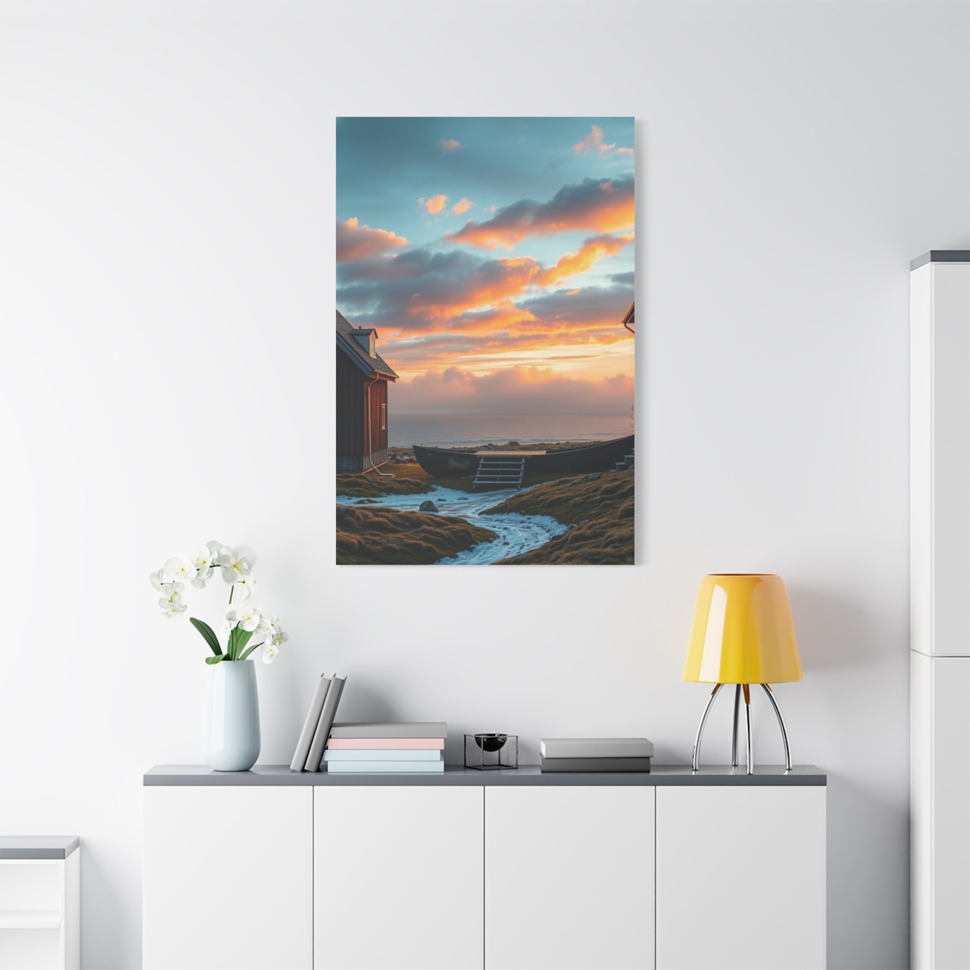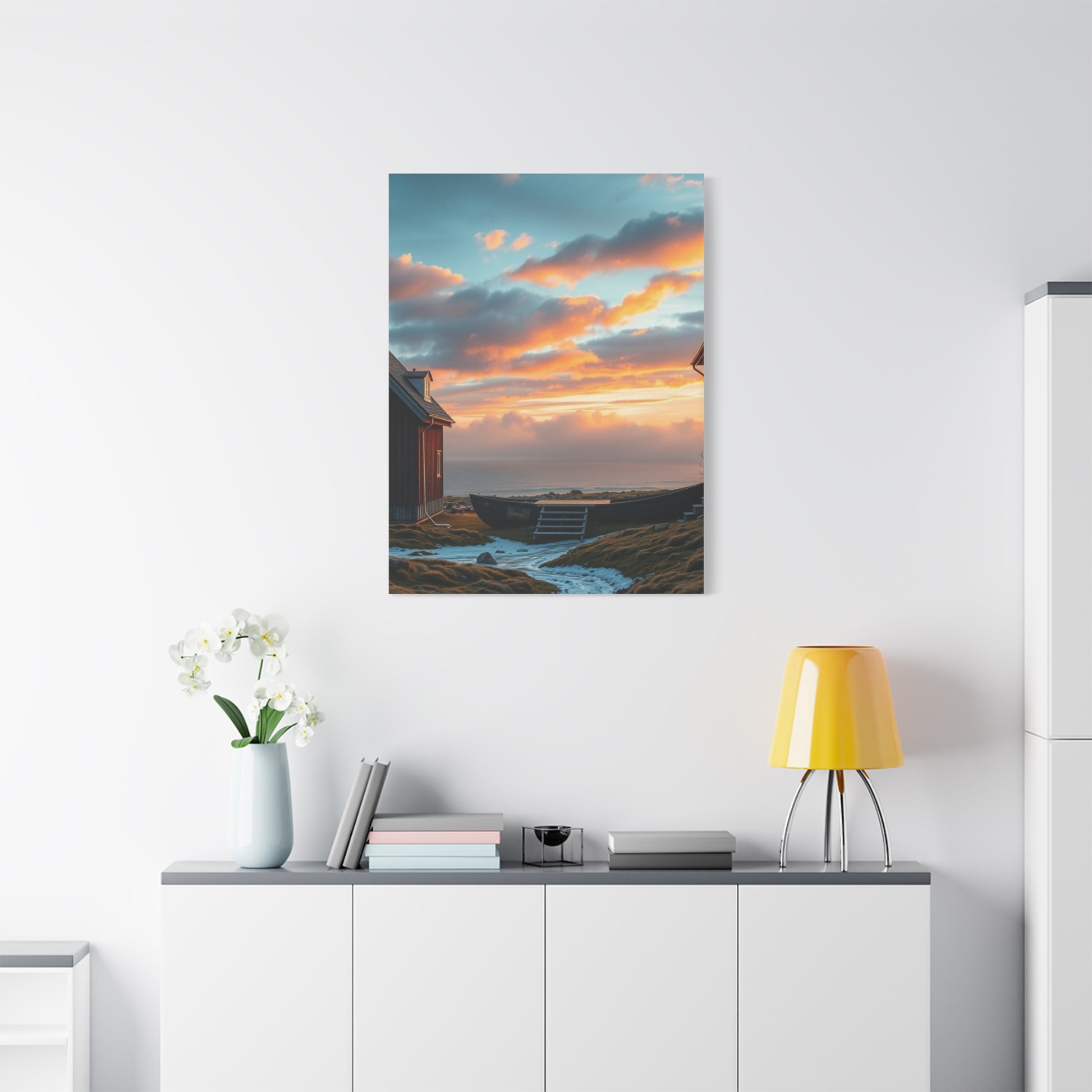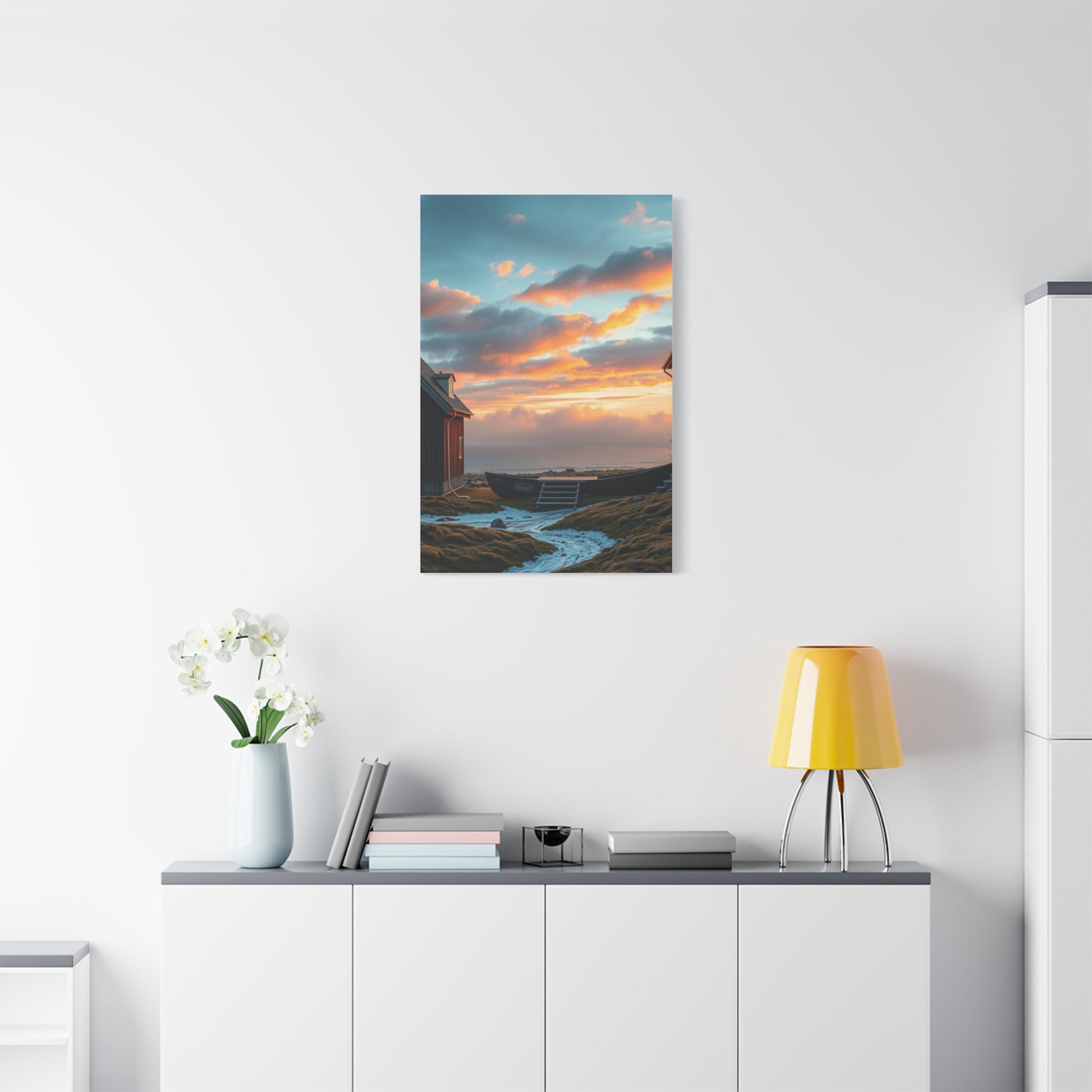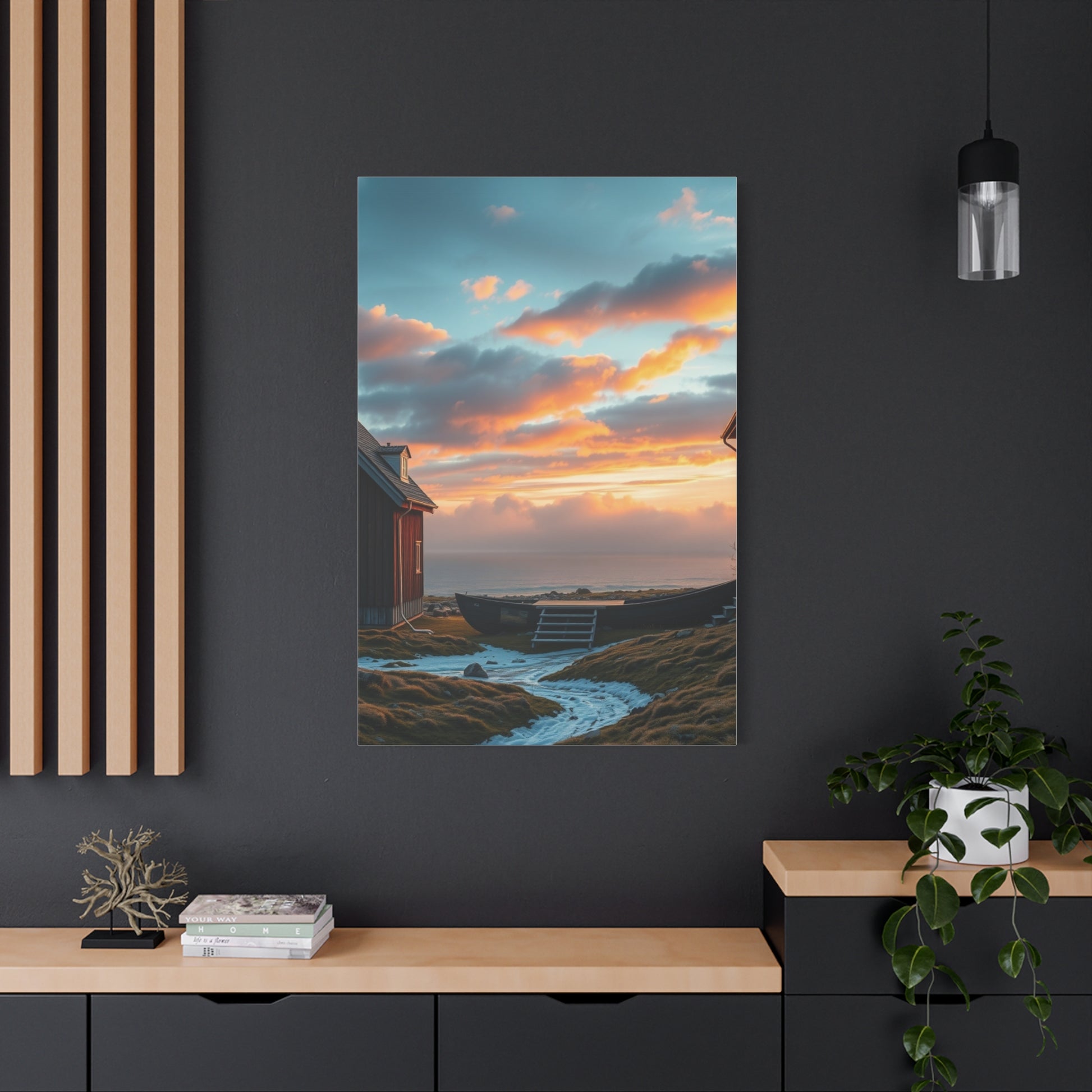 - Materials: cotton and polyester composite (canvas), pine wood (frame)