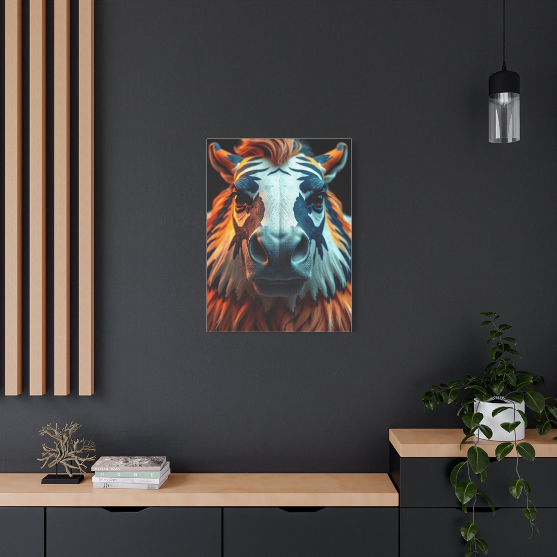 - Materials: cotton and polyester composite (canvas), pine wood (frame)