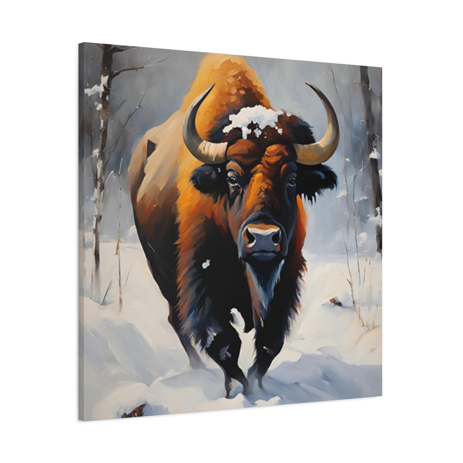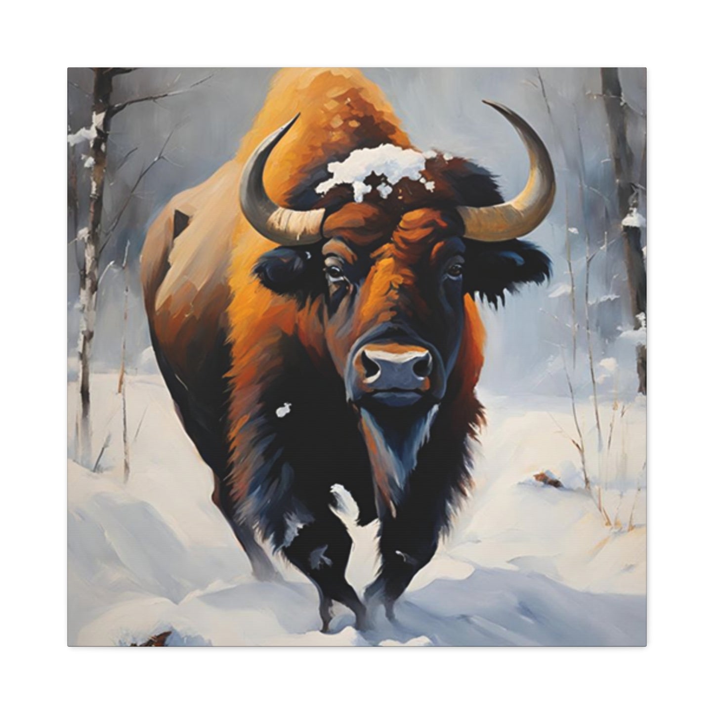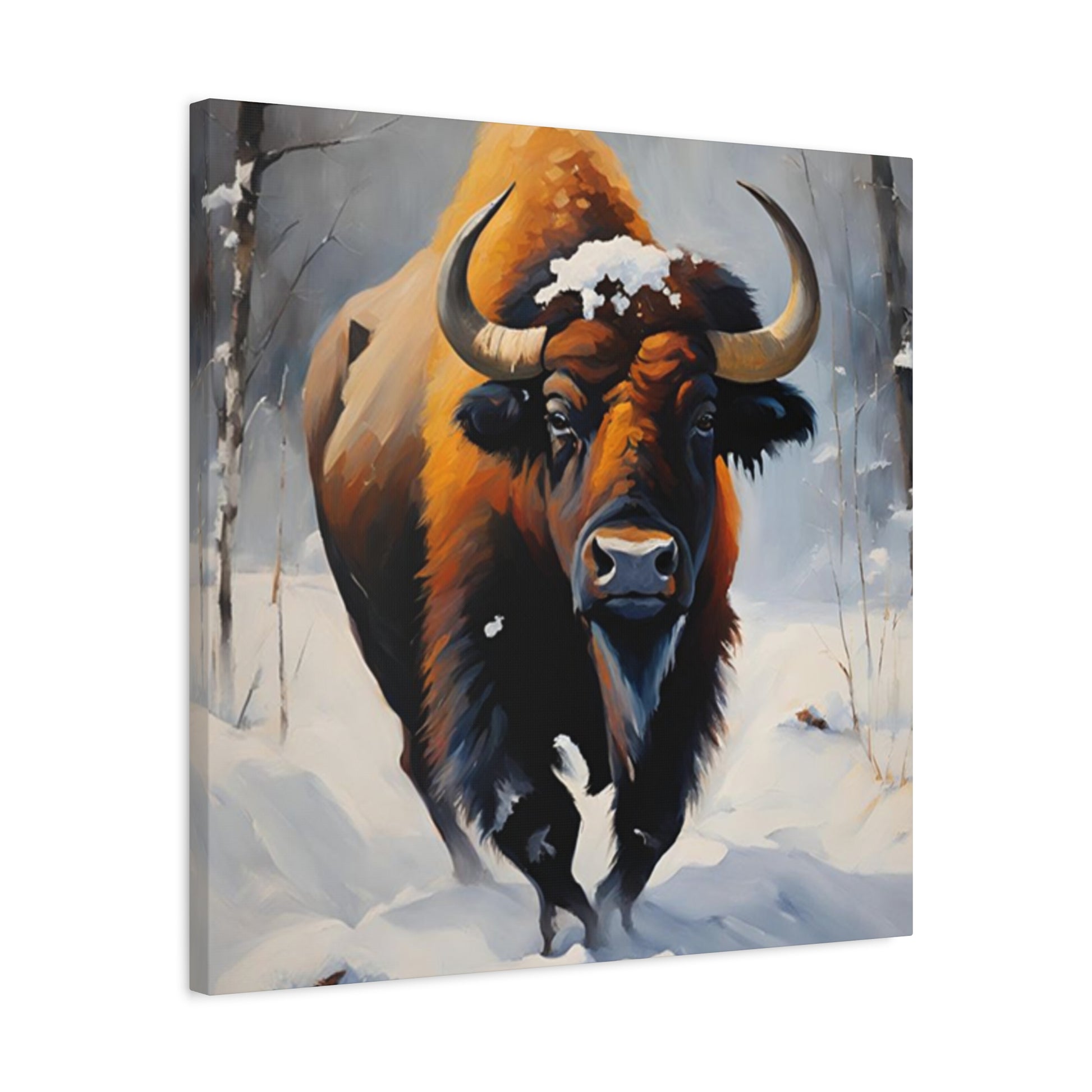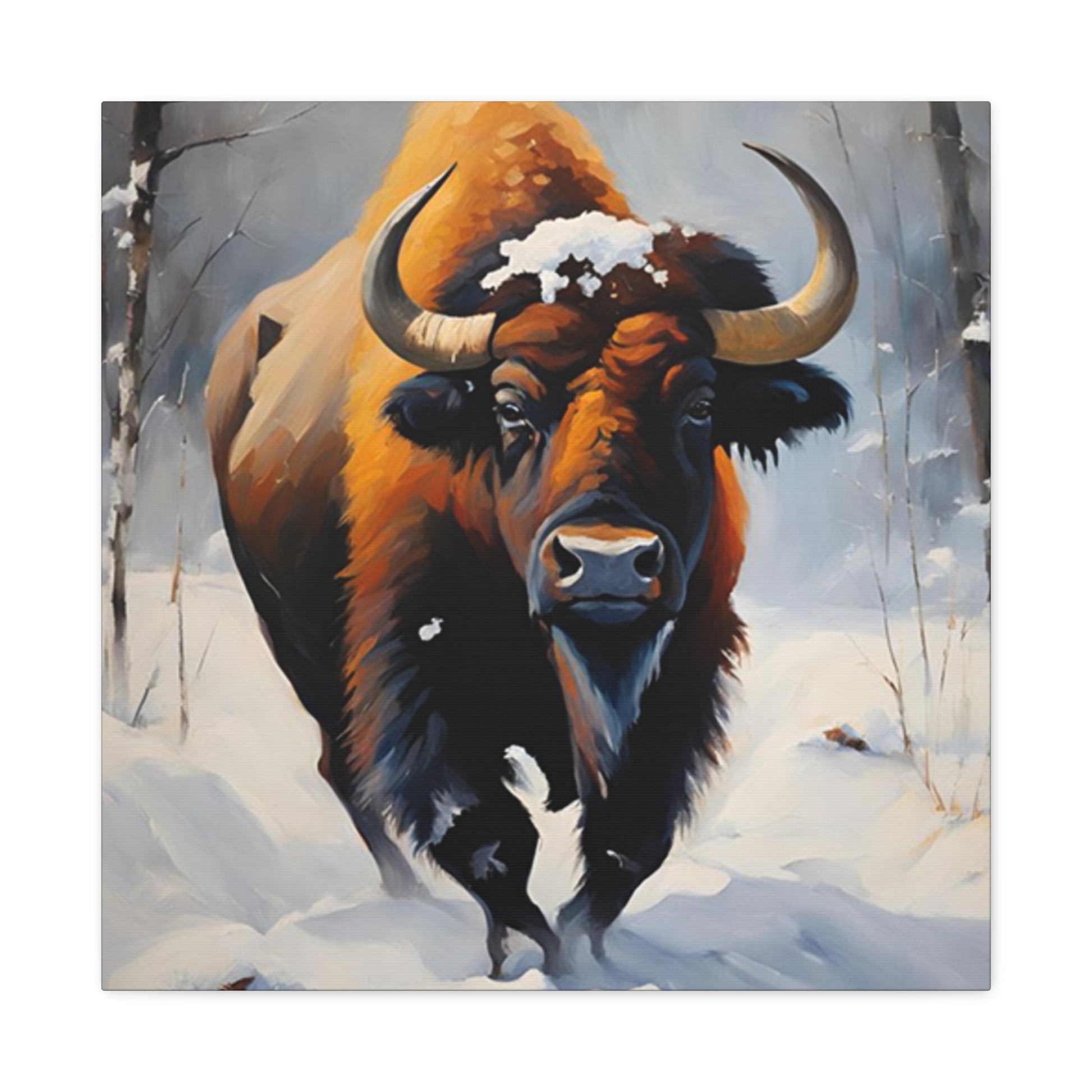 Bull In Snow Painting Wall Art & Canvas Prints