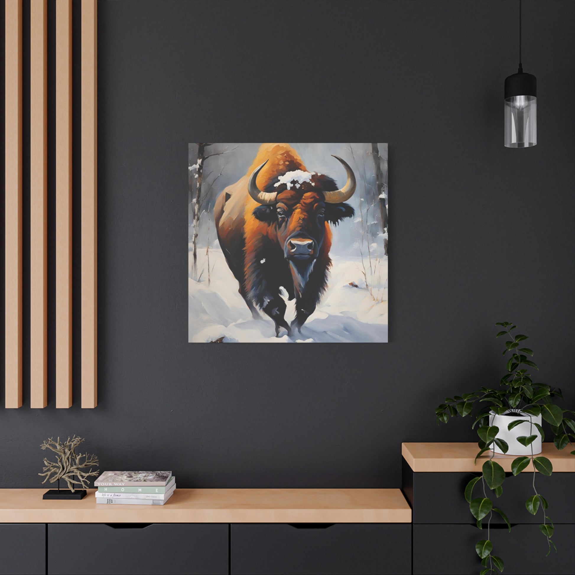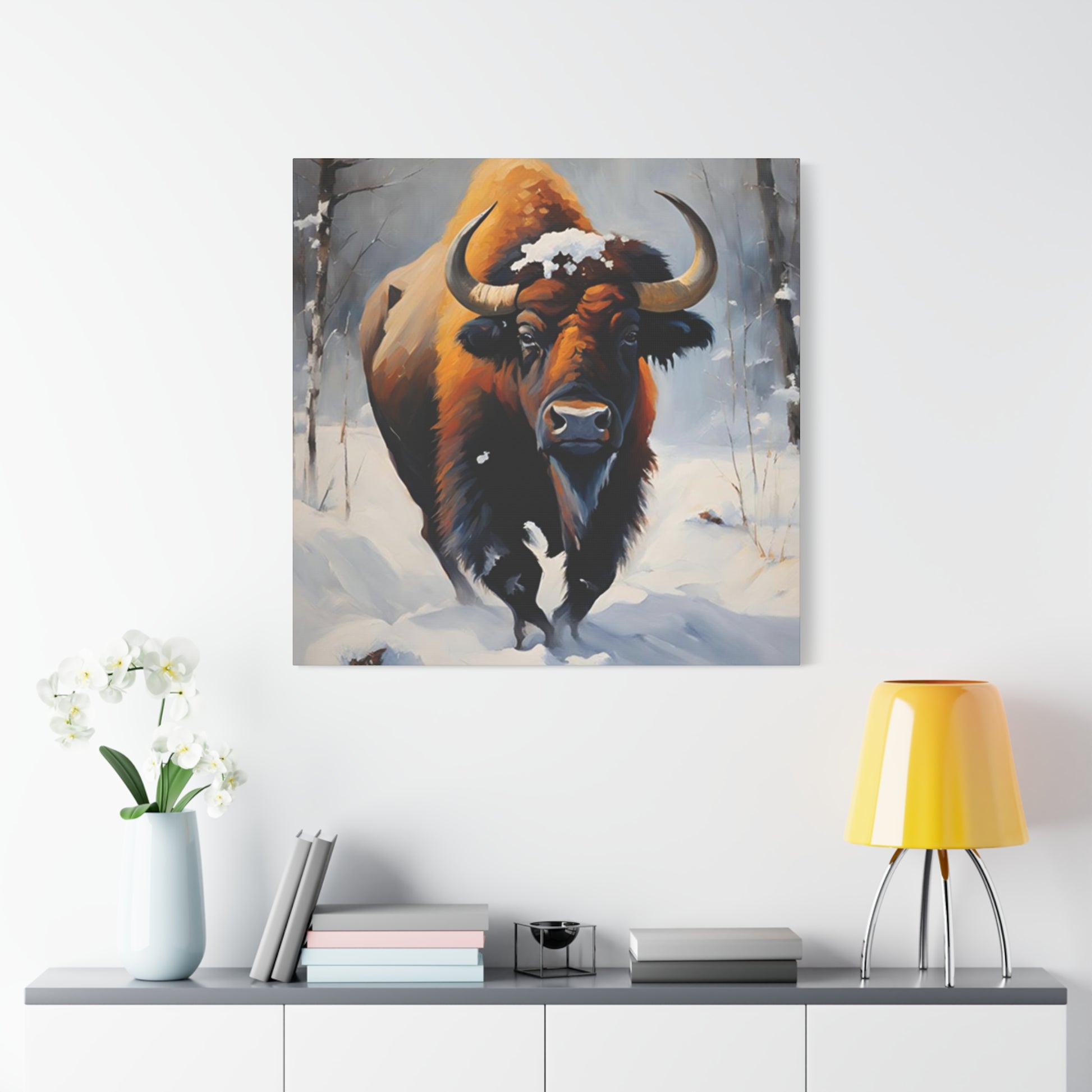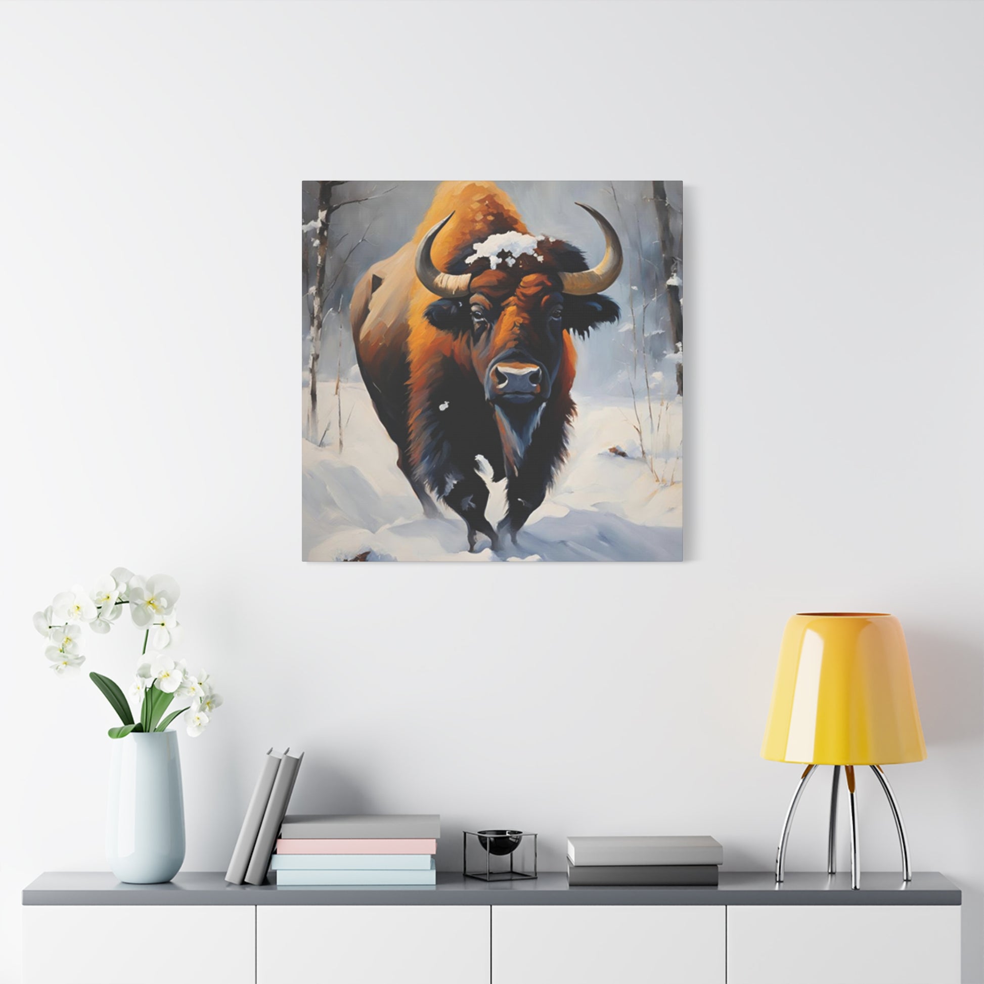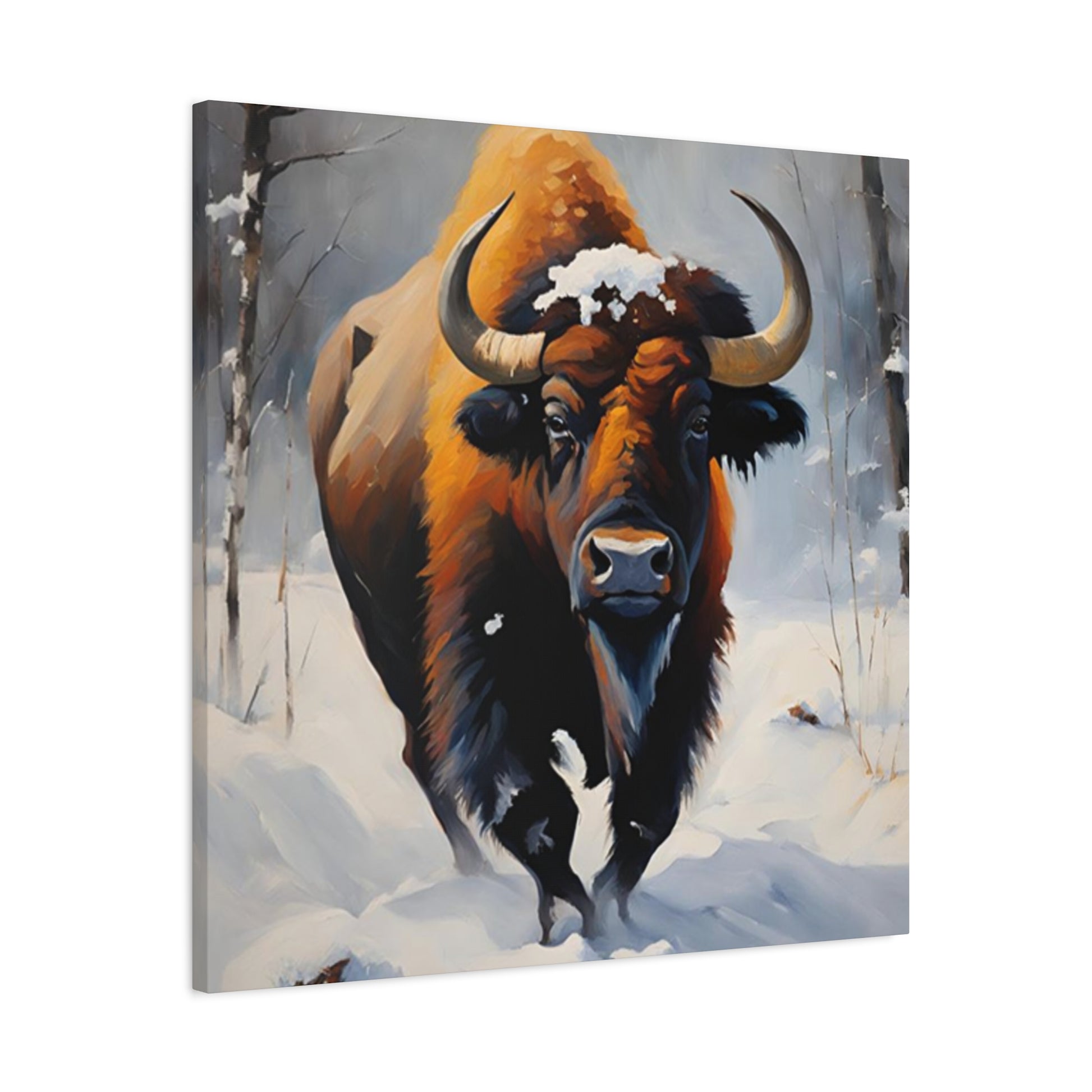 Bull In Snow Painting Wall Art & Canvas Prints