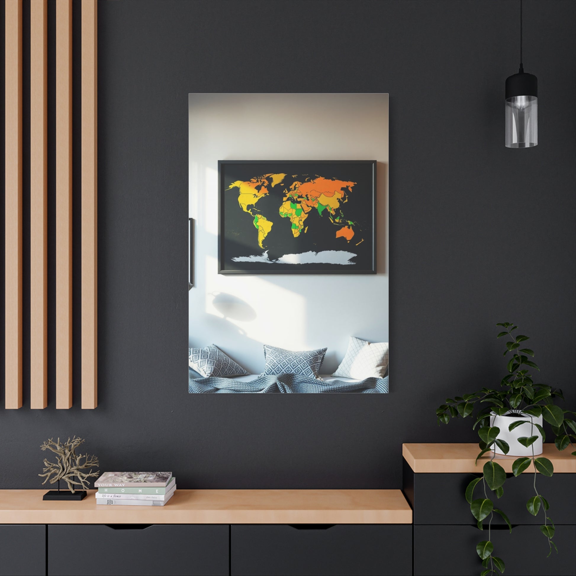 - Materials: cotton and polyester composite (canvas), pine wood (frame)