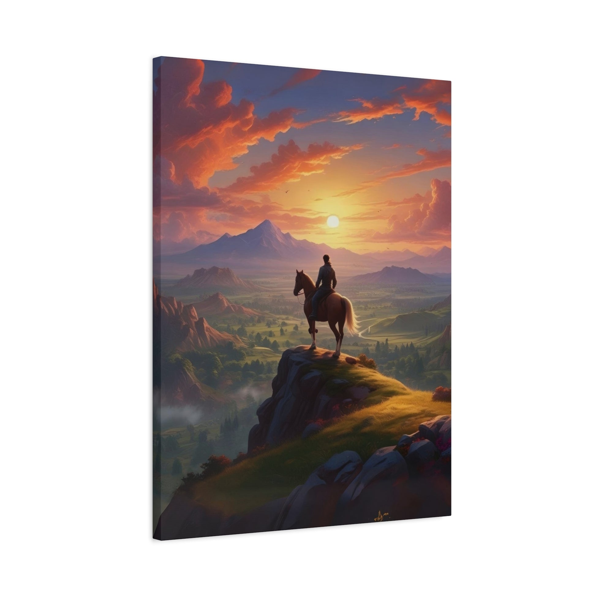 Cowboy At Hill Edge Sunset Wall Art & Canvas Prints