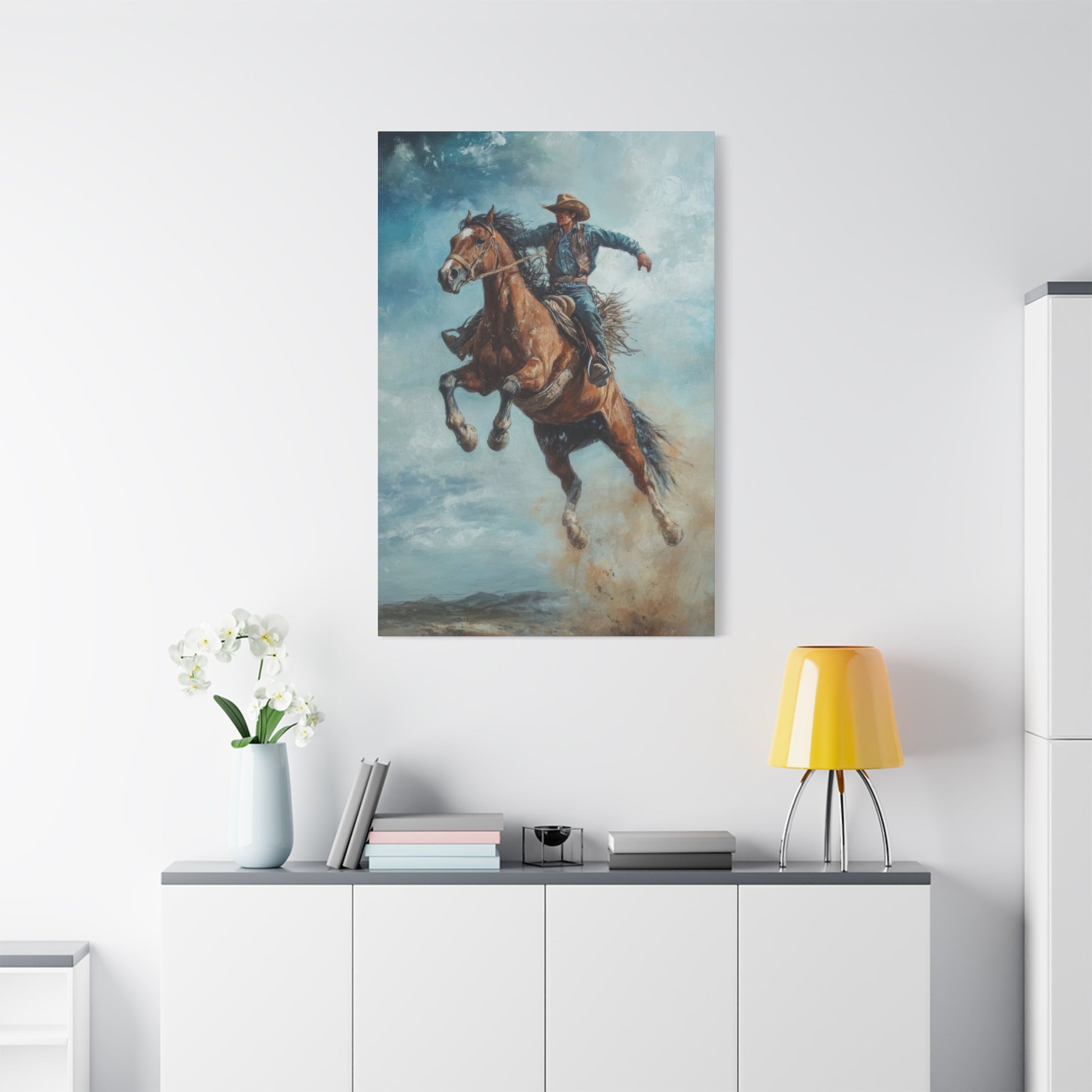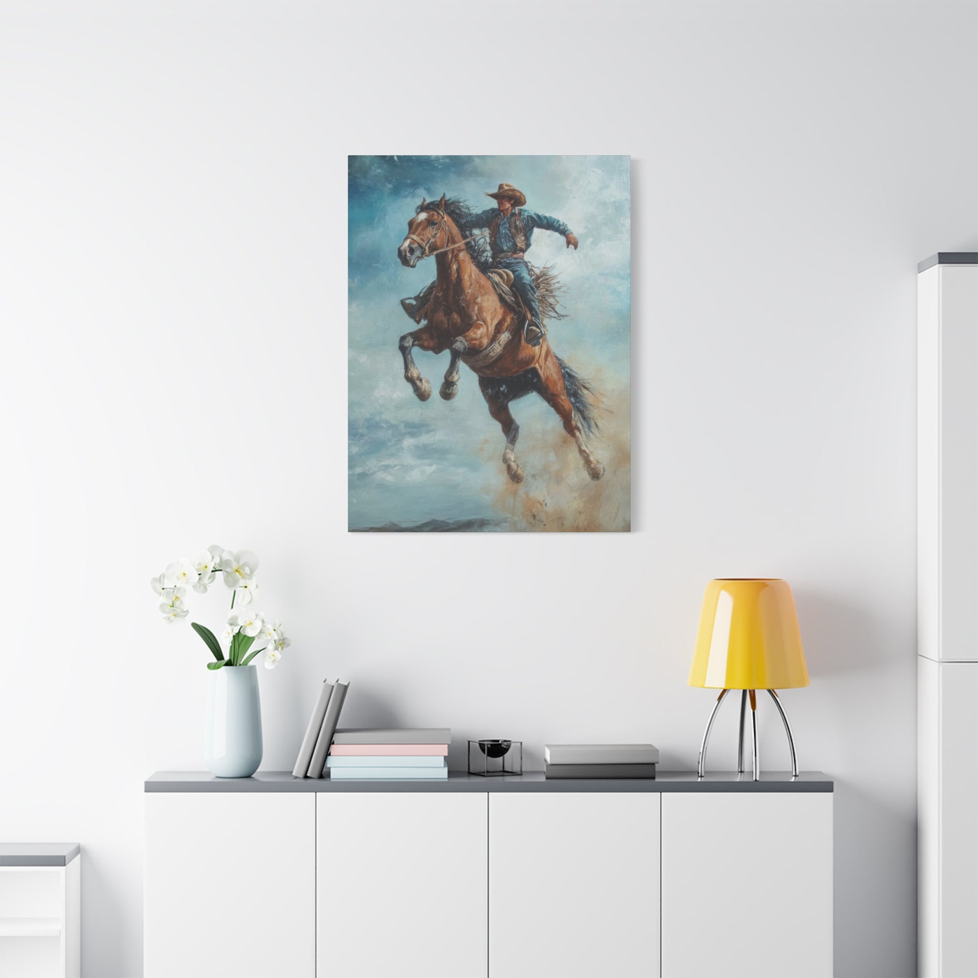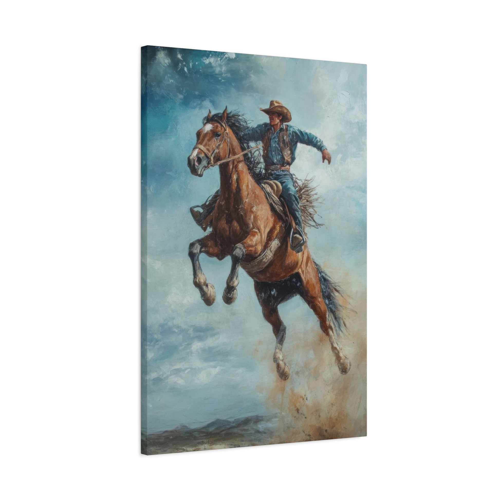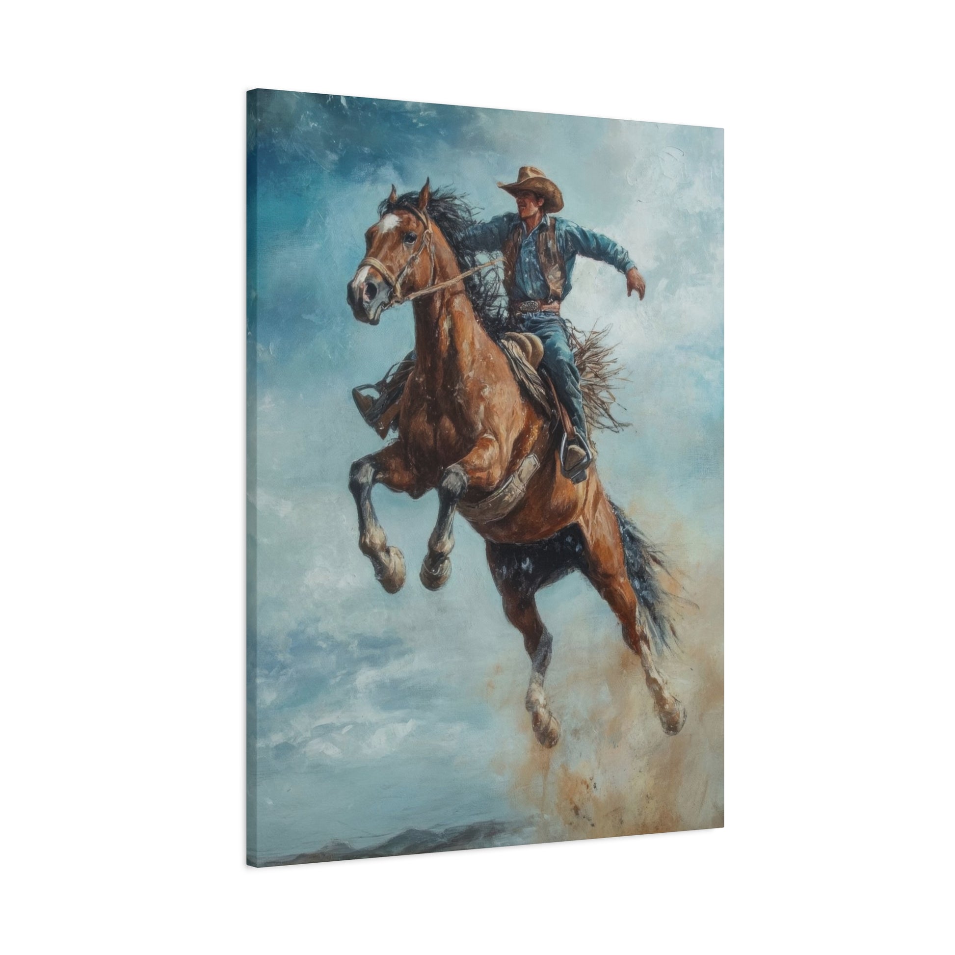 Cowboy On Jumping Horse 2 Wall Art & Canvas Prints