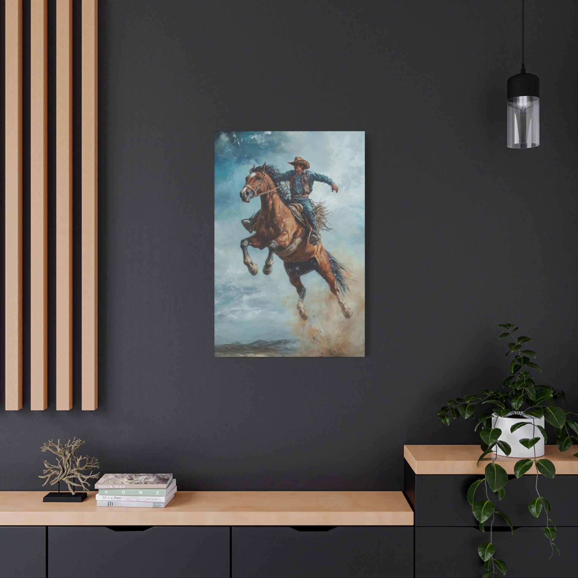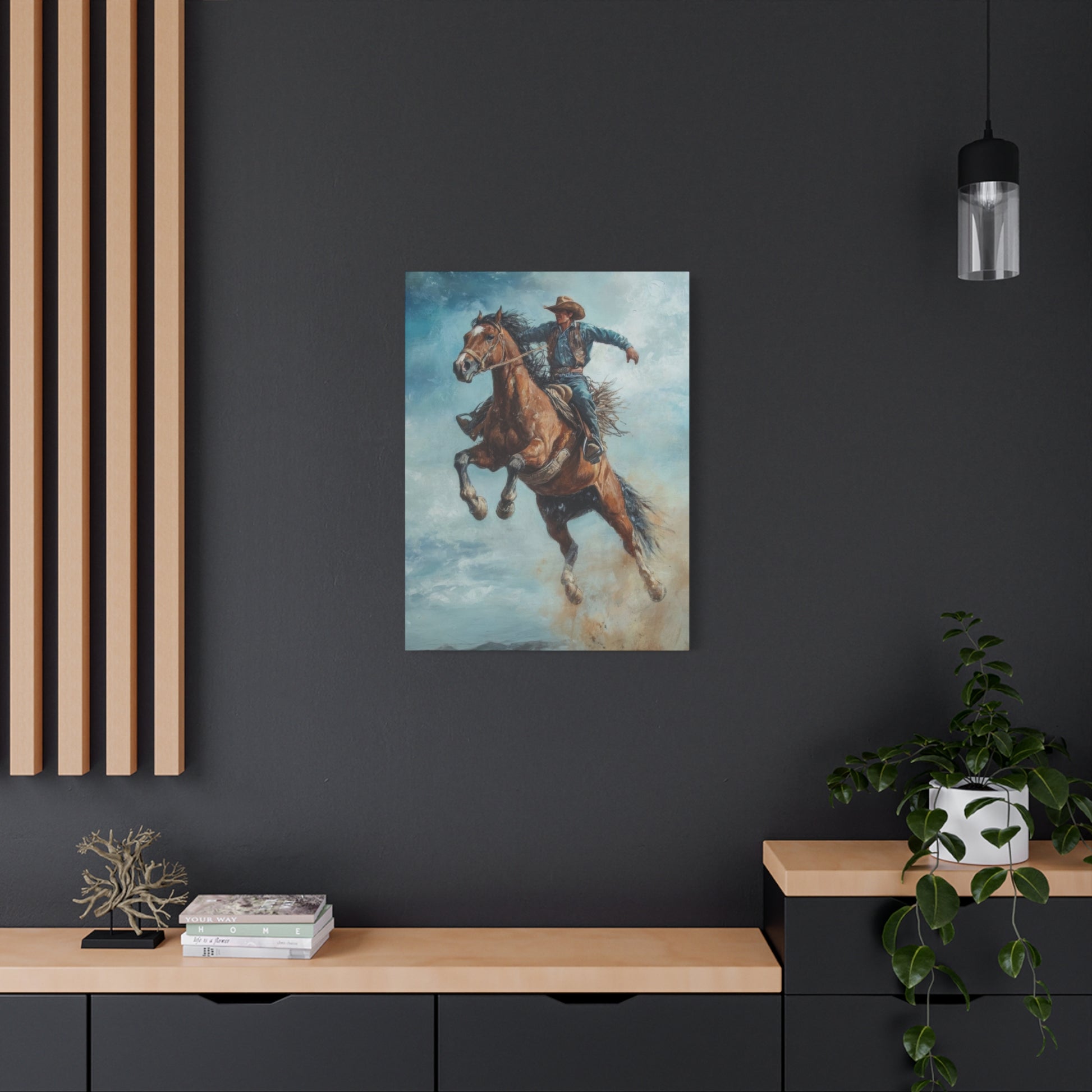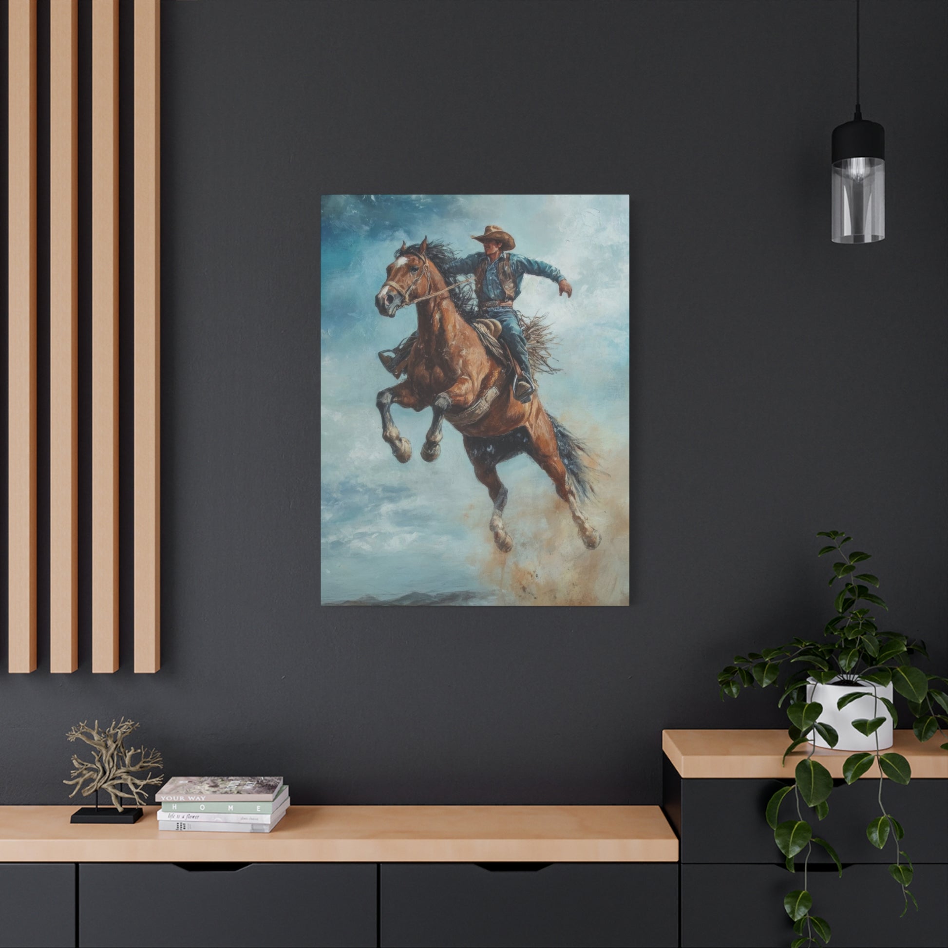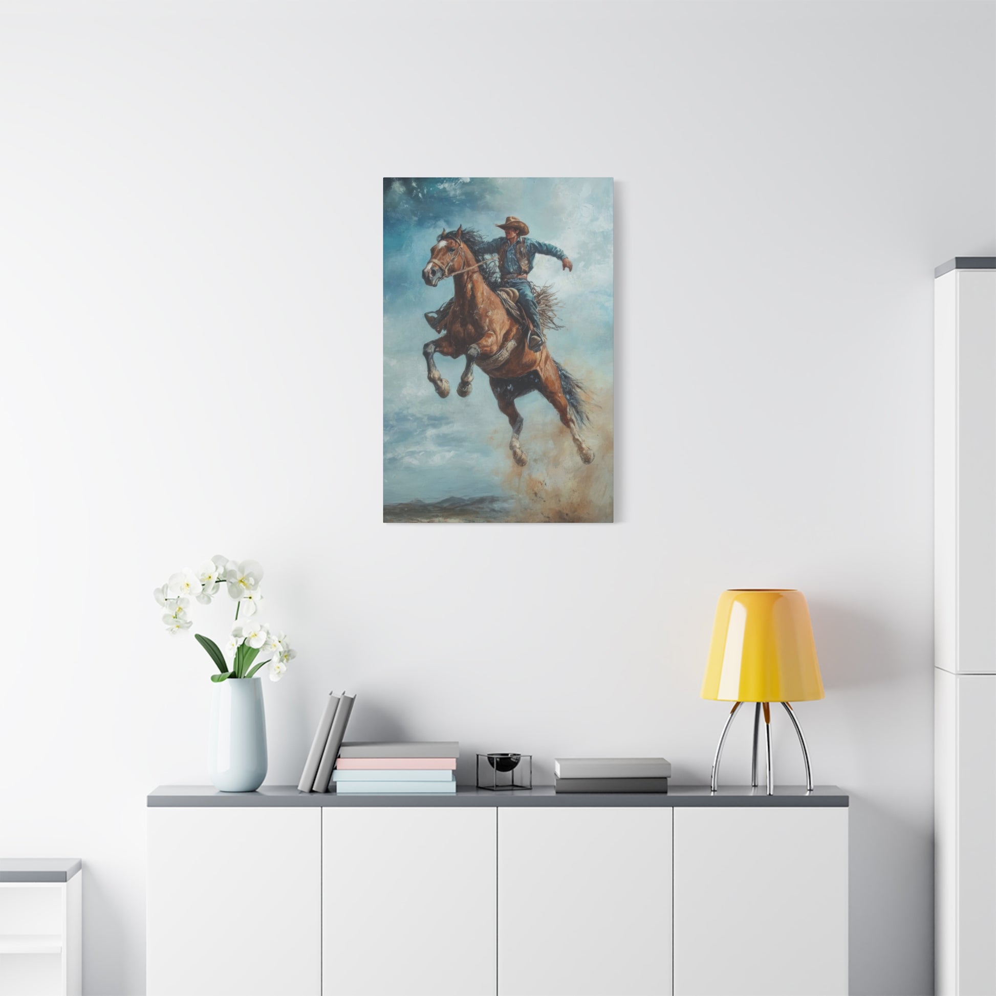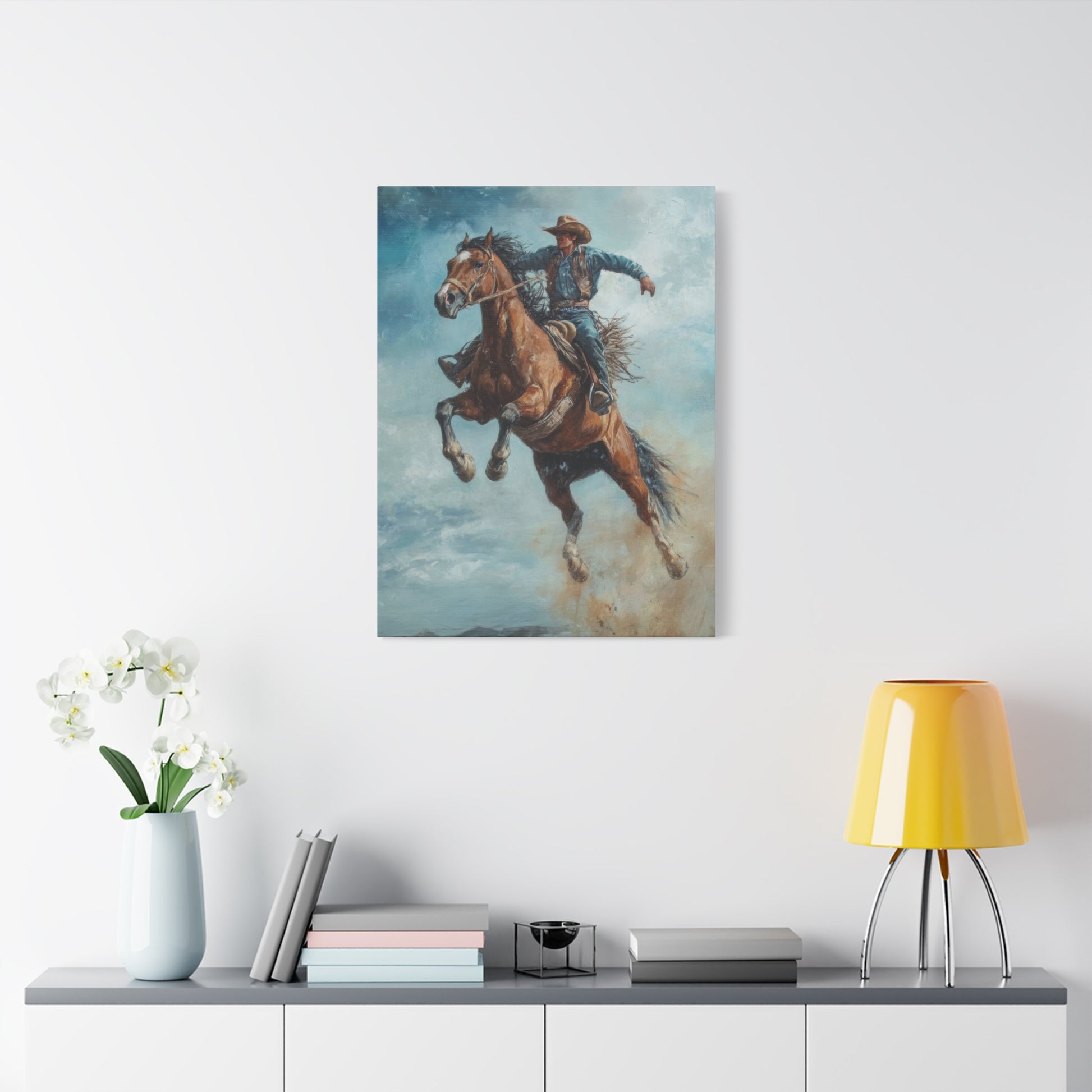 Cowboy On Jumping Horse 2 Wall Art & Canvas Prints