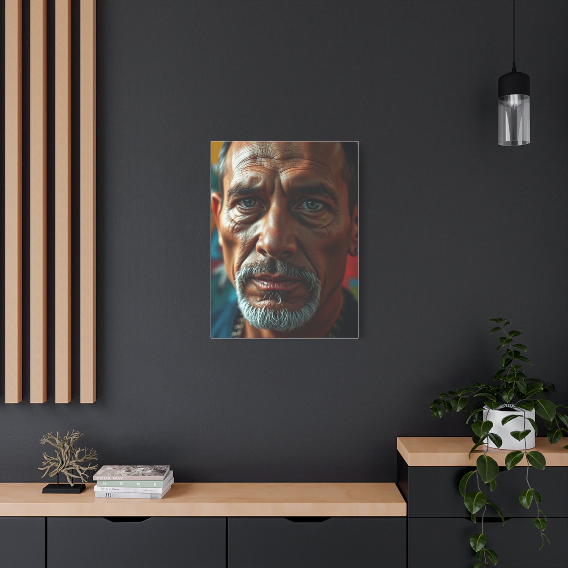 - Materials: cotton and polyester composite (canvas), pine wood (frame)