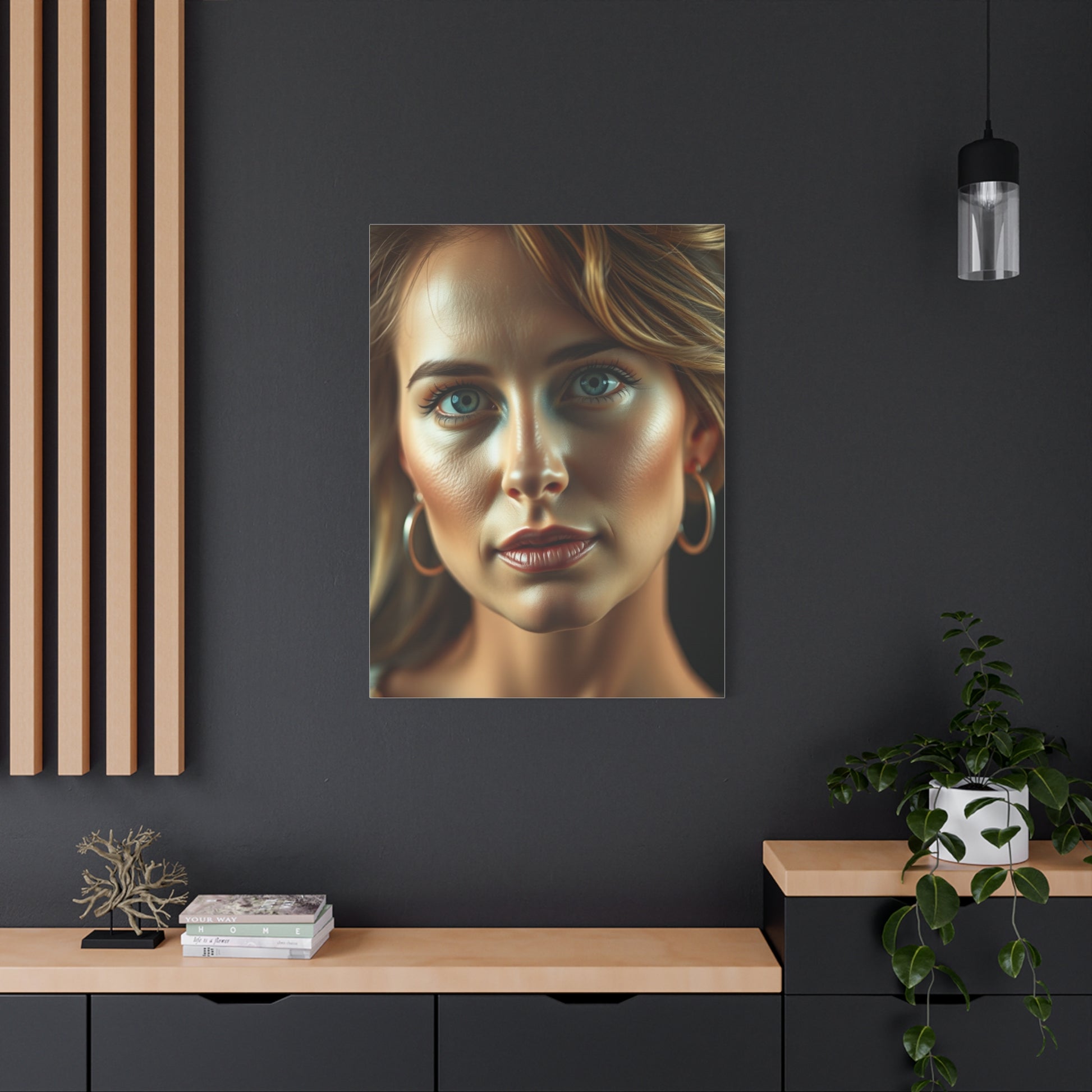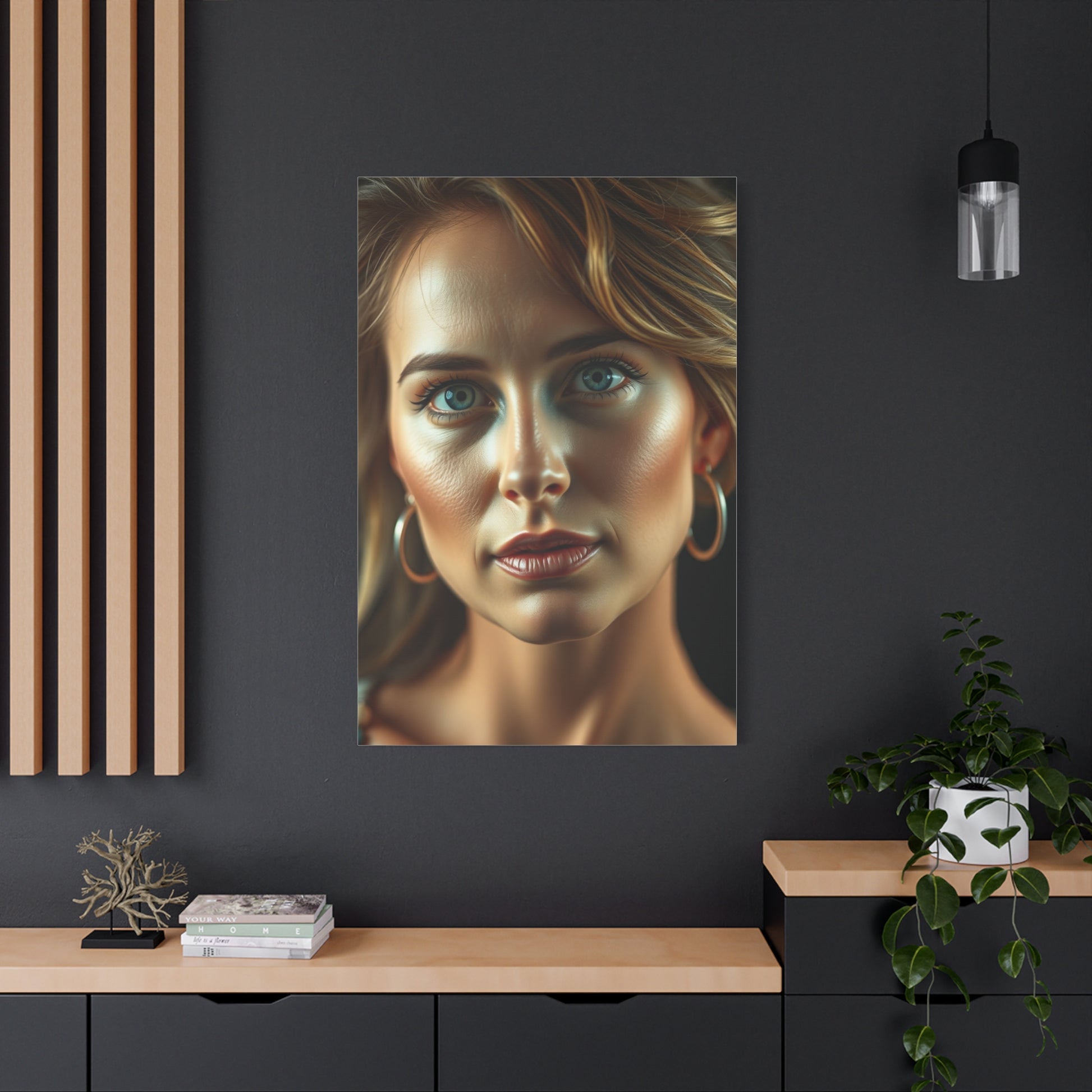 - Materials: cotton and polyester composite (canvas), pine wood (frame)