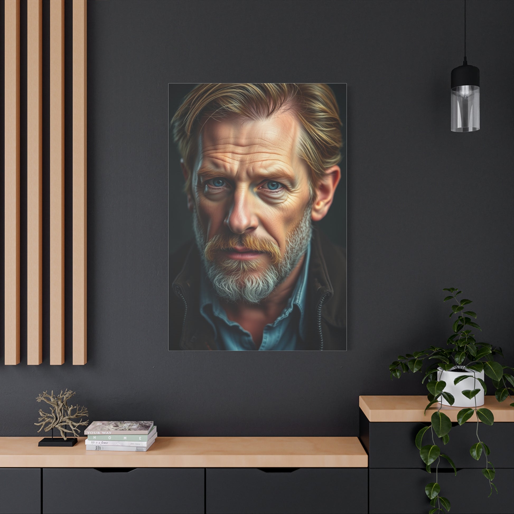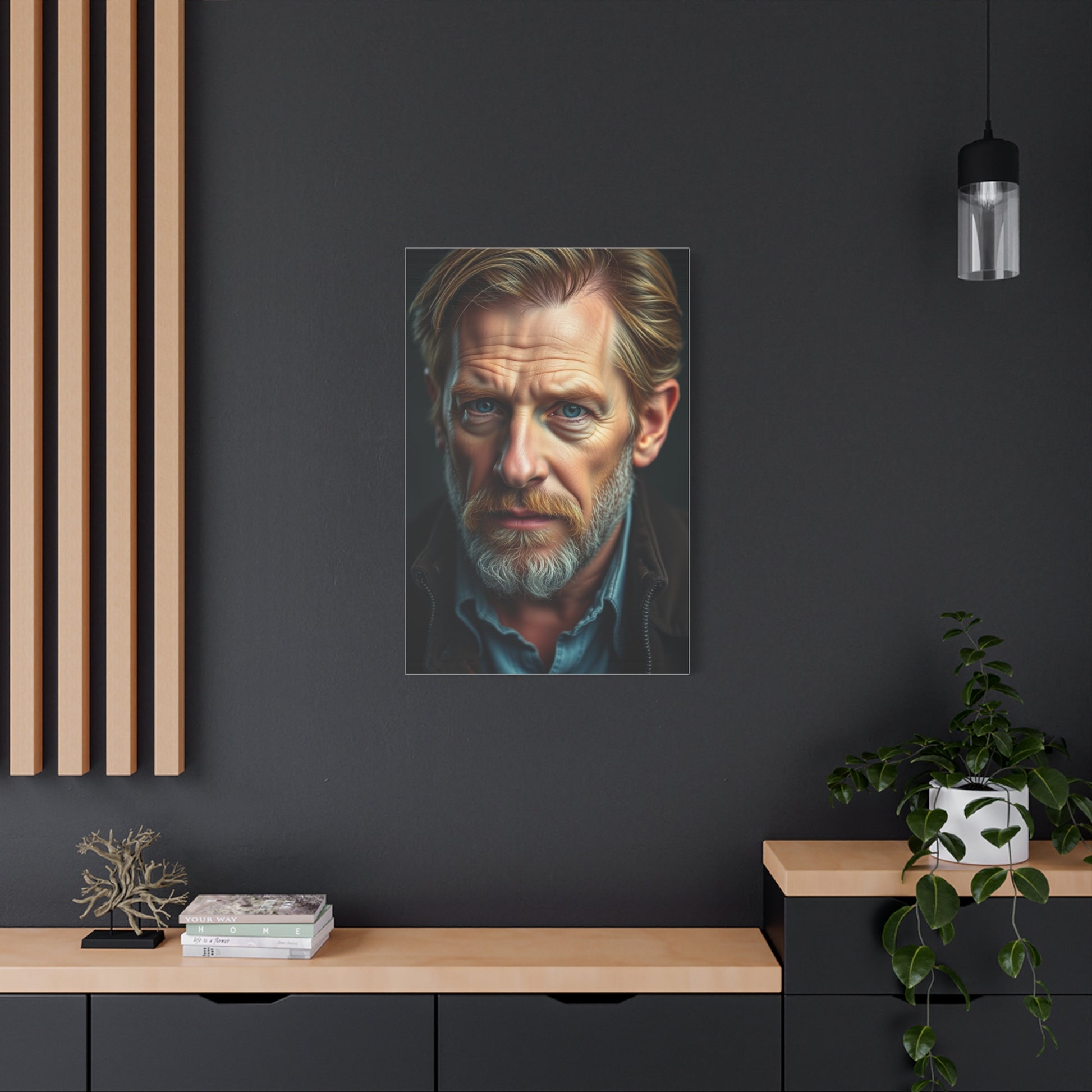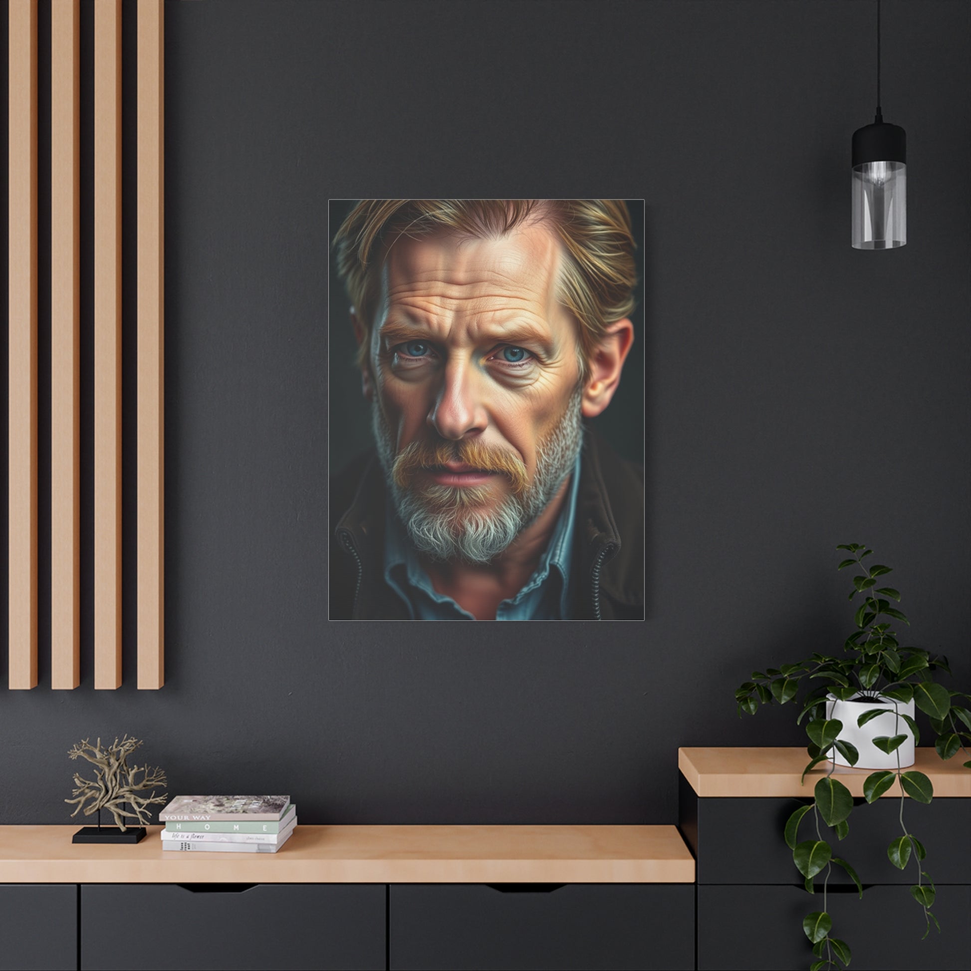 - Materials: cotton and polyester composite (canvas), pine wood (frame)