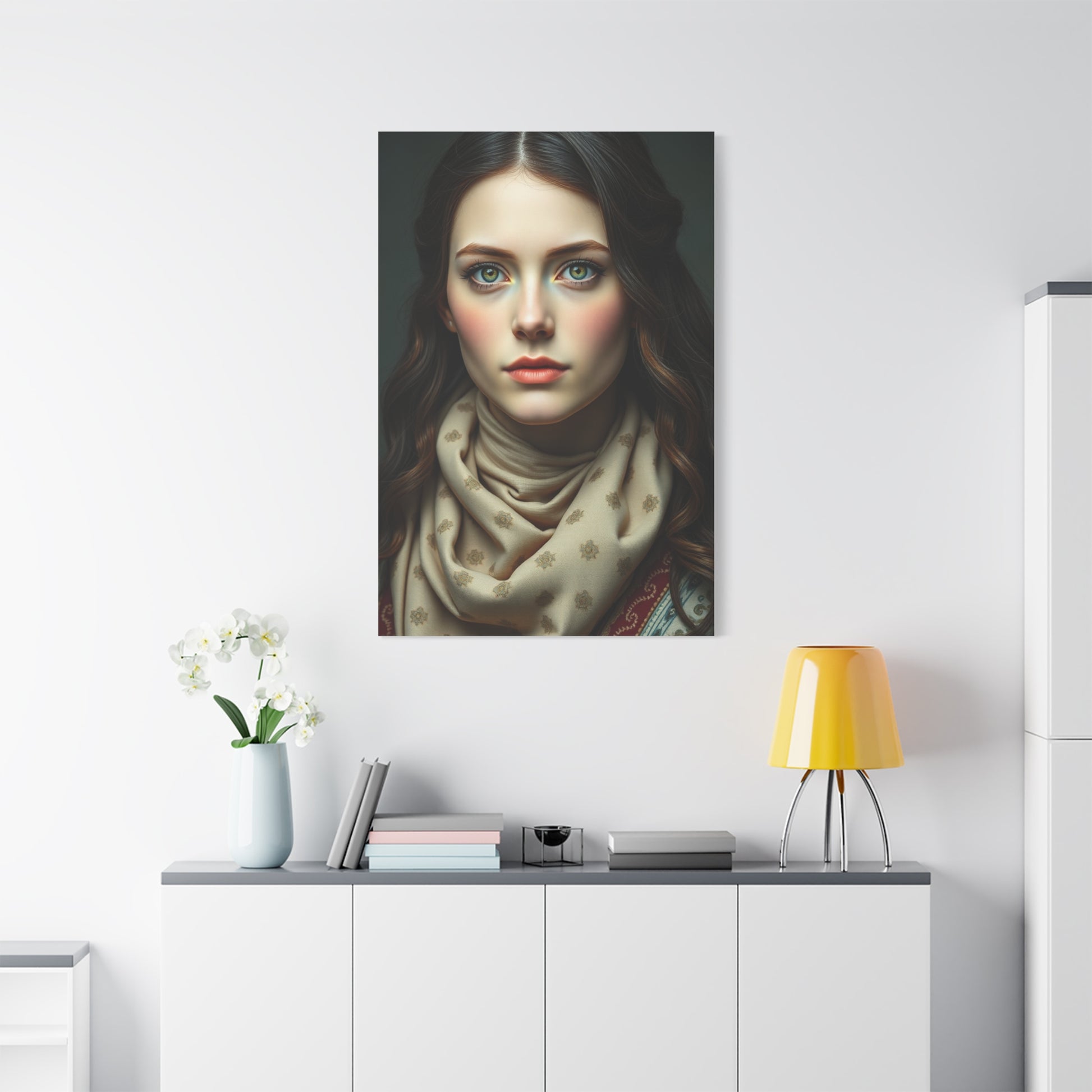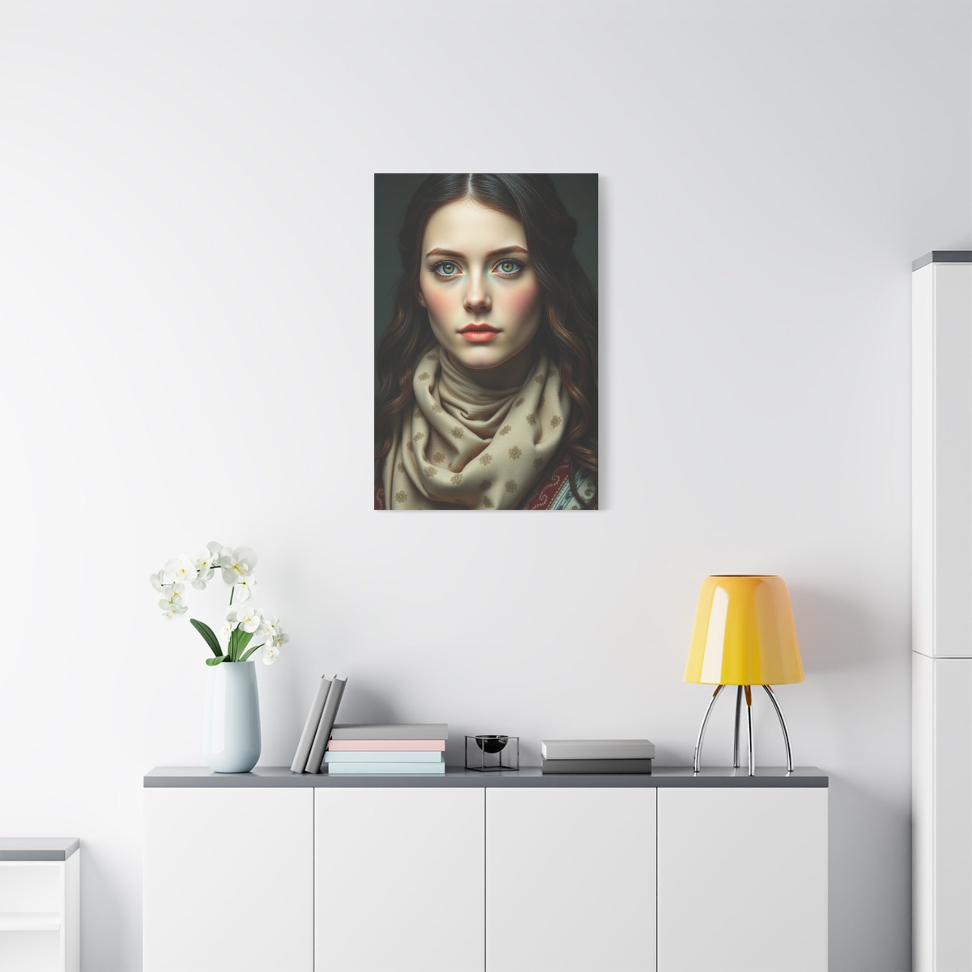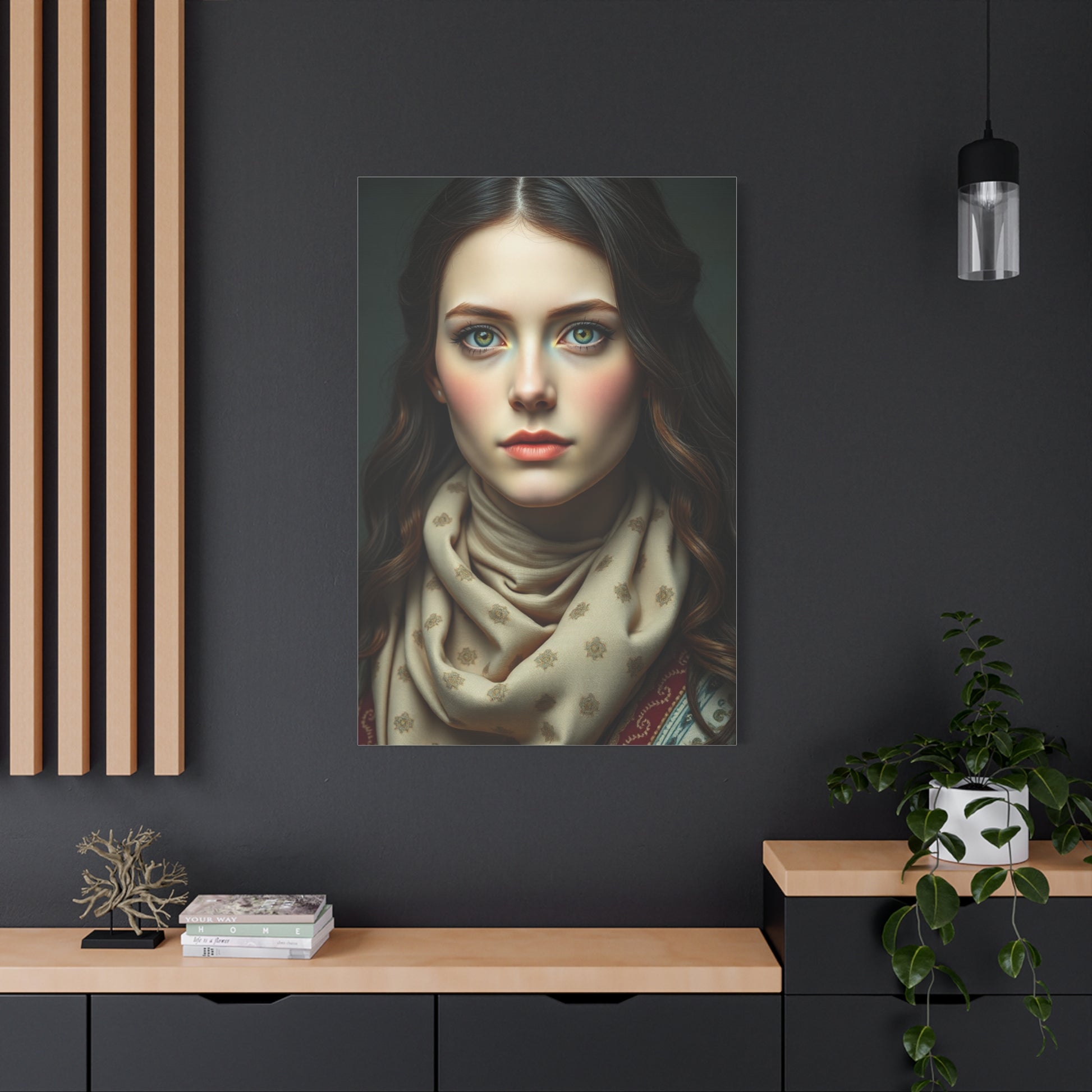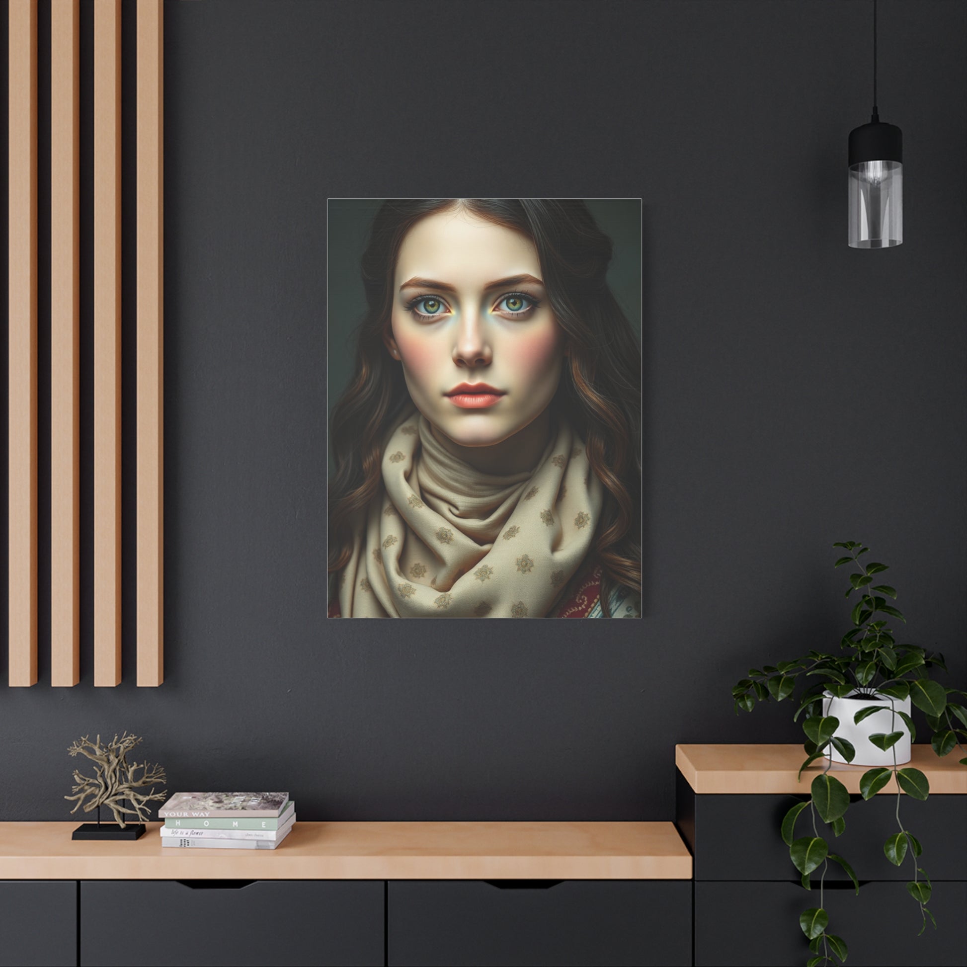 - Materials: cotton and polyester composite (canvas), pine wood (frame)