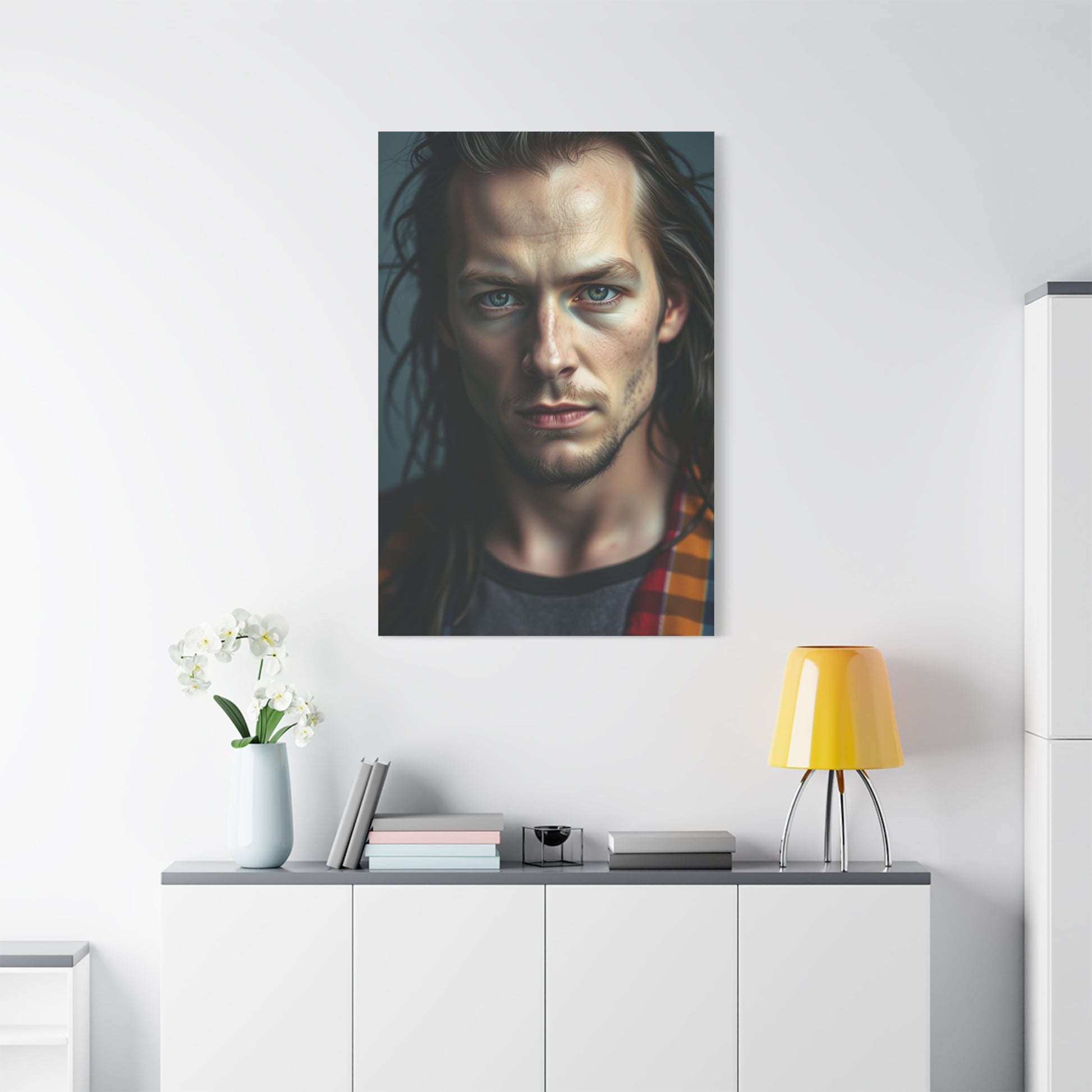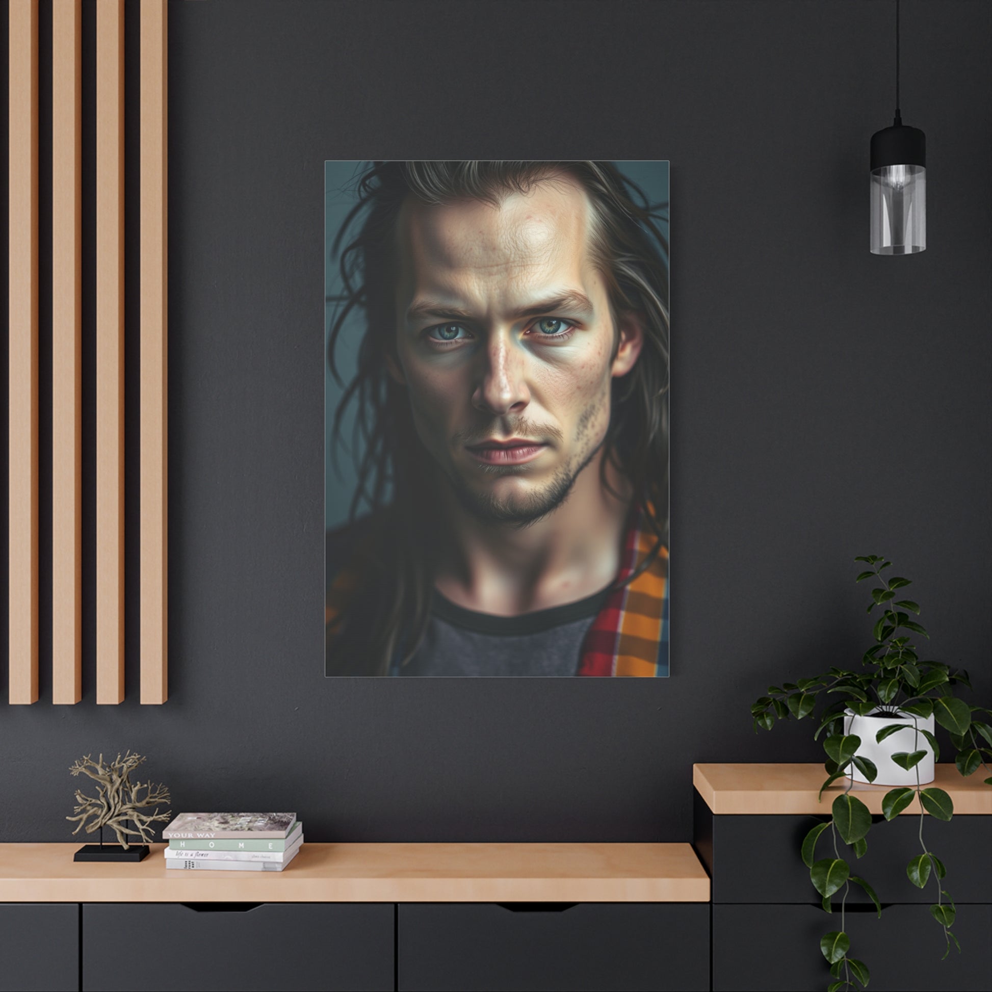 - Materials: cotton and polyester composite (canvas), pine wood (frame)