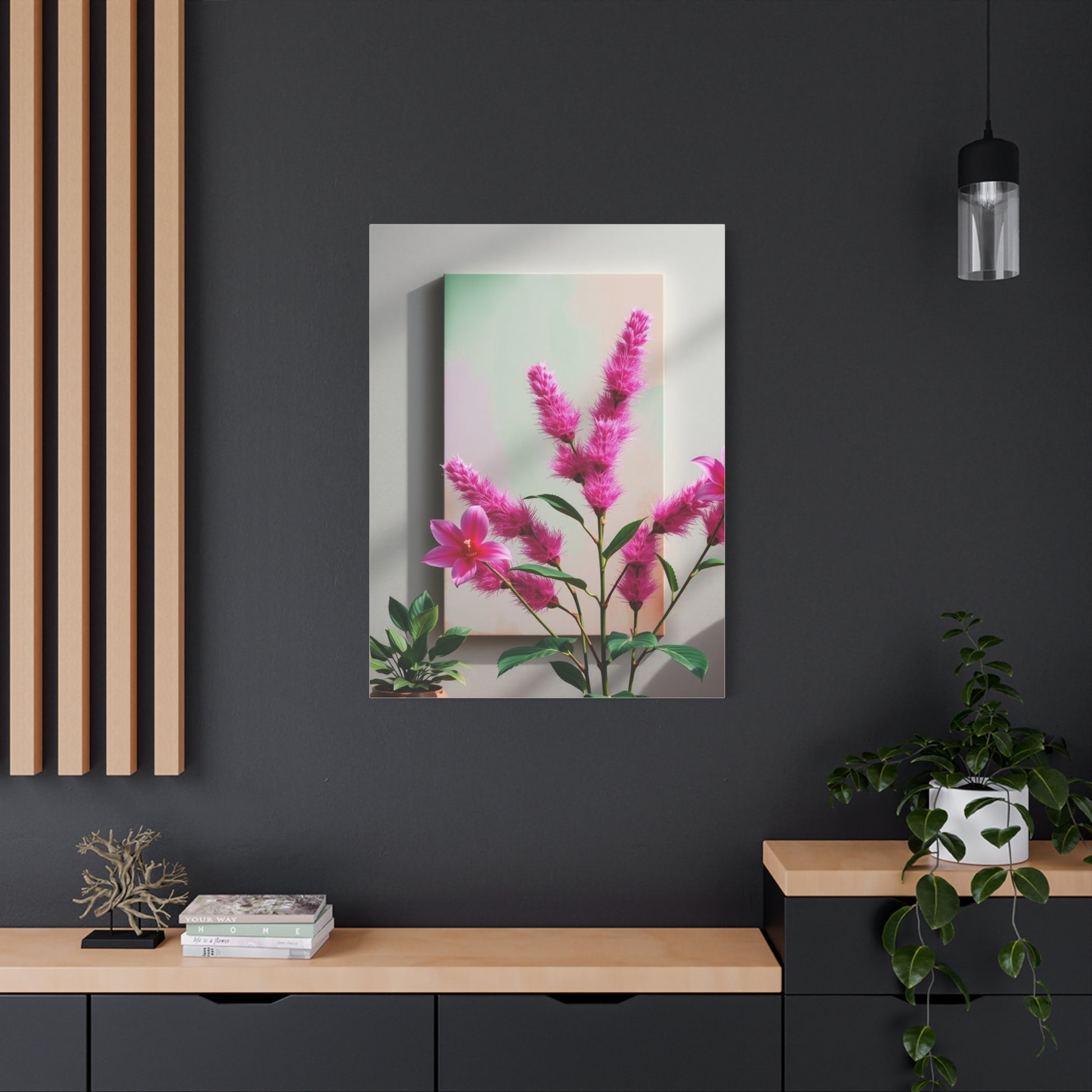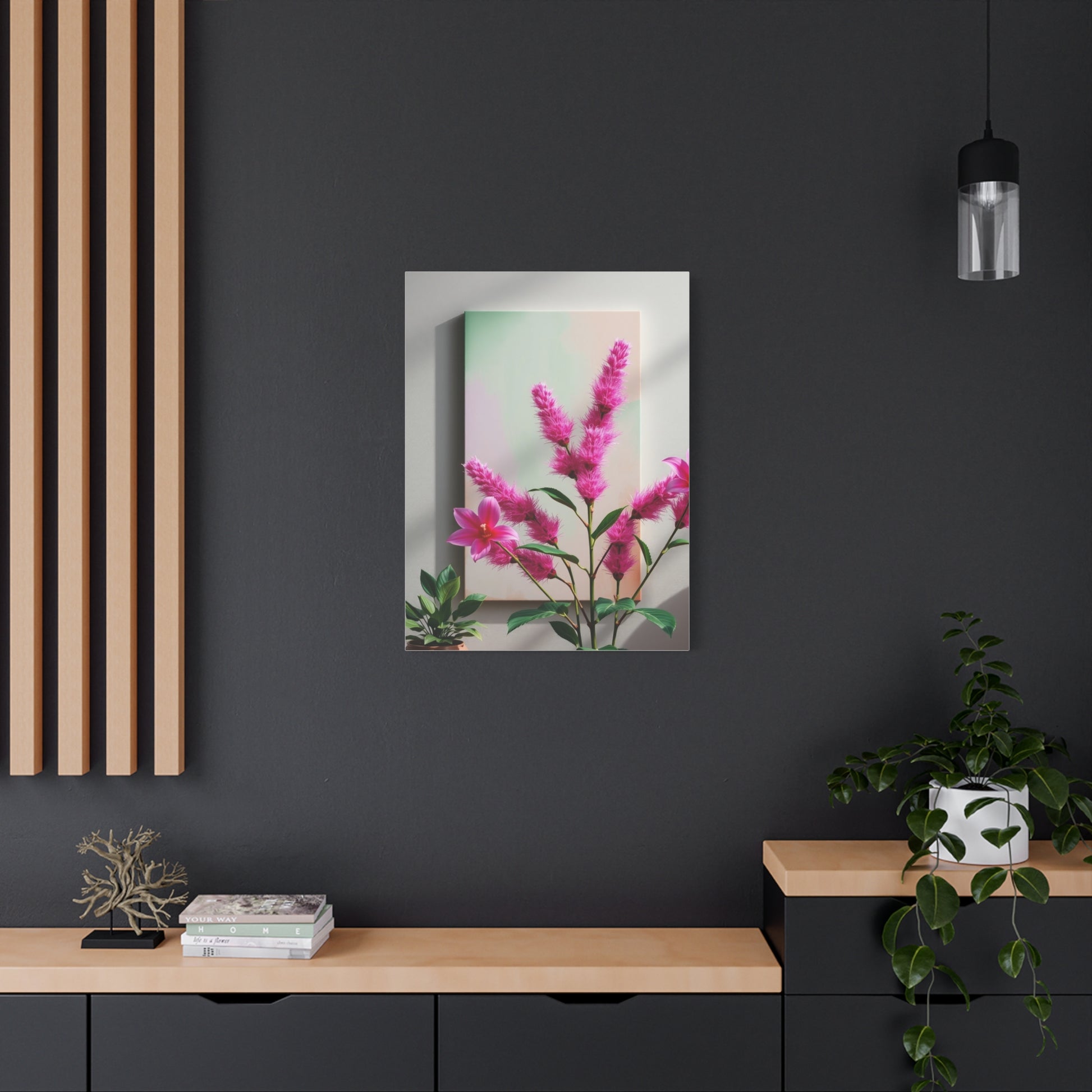 - Materials: cotton and polyester composite (canvas), pine wood (frame)