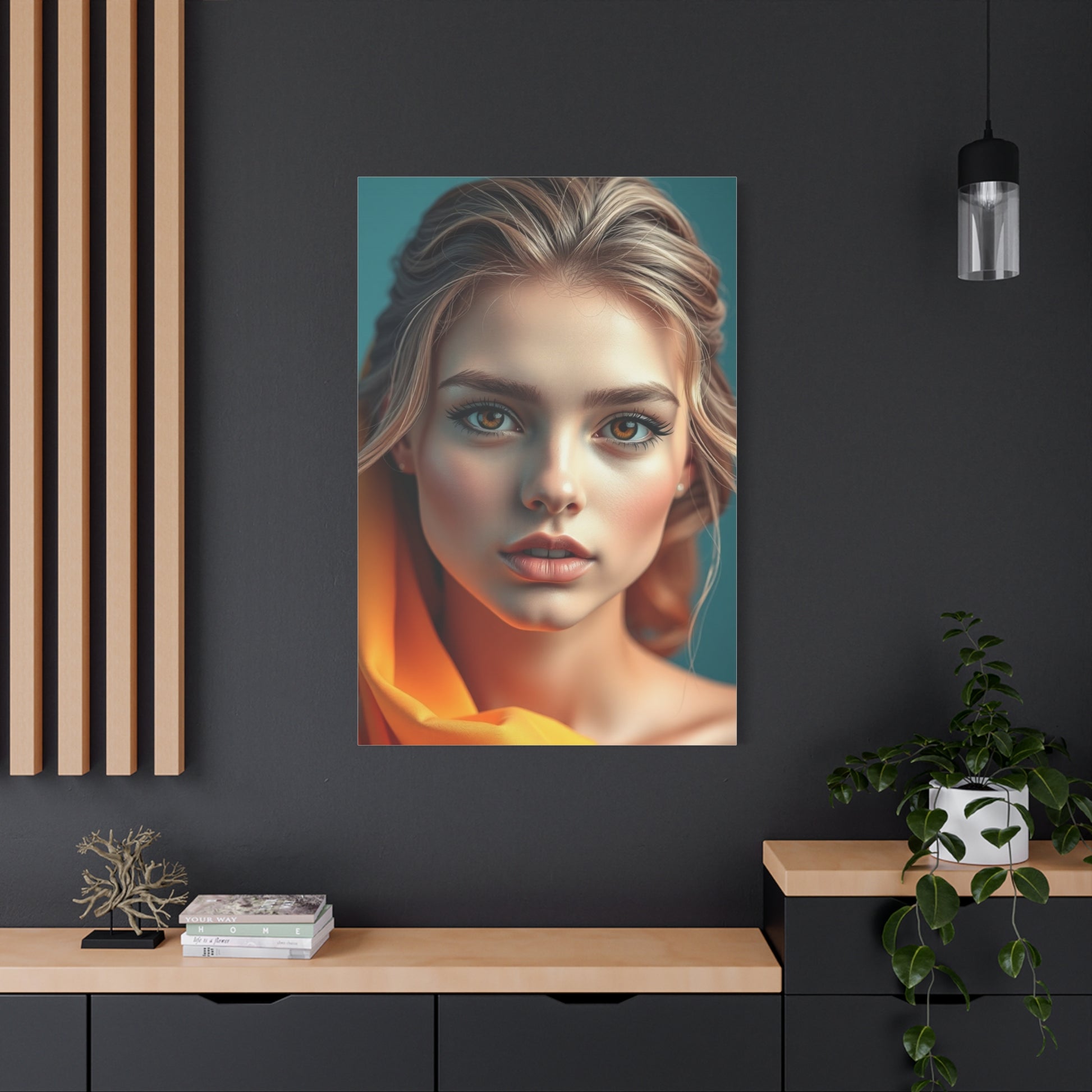 - Materials: cotton and polyester composite (canvas), pine wood (frame)