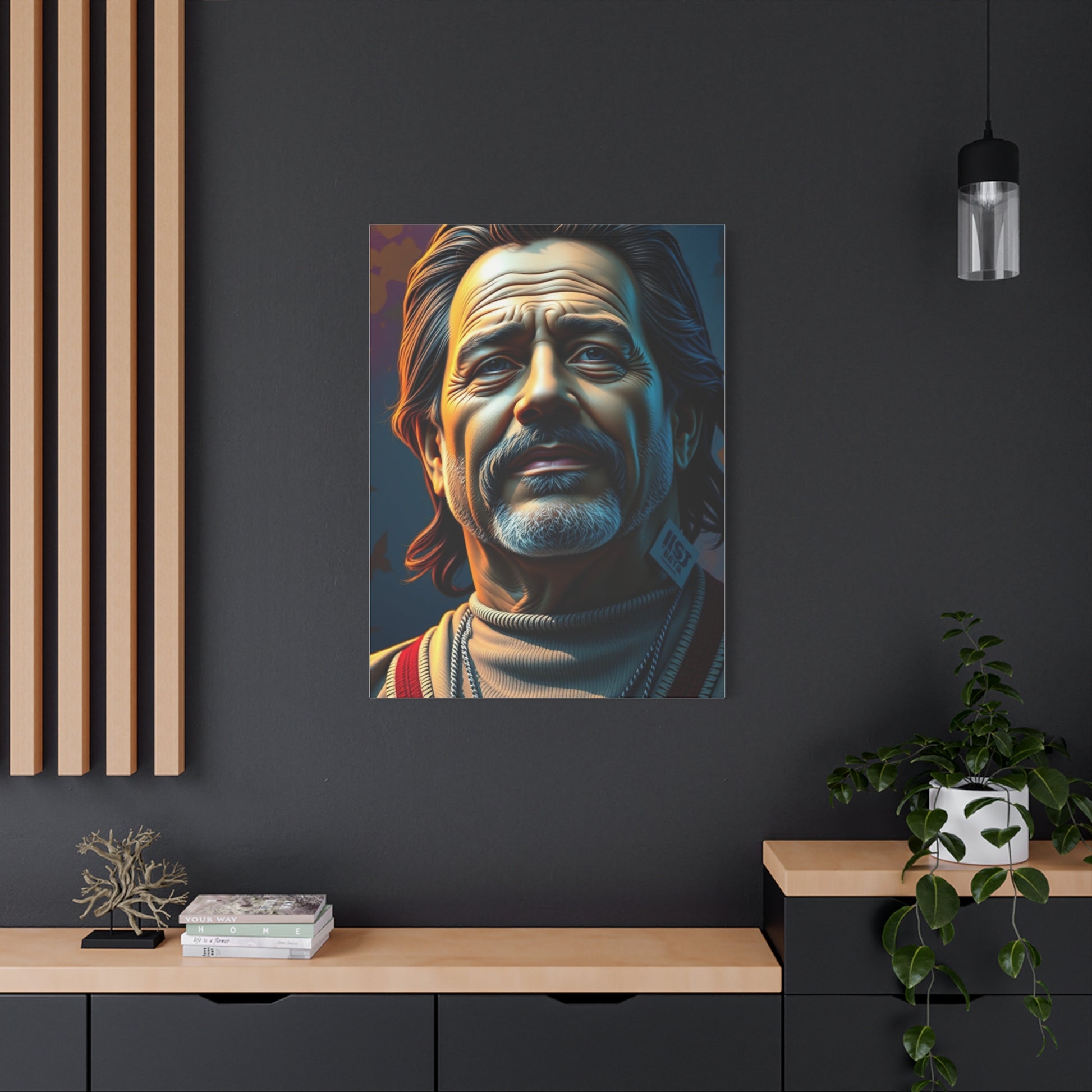 - Materials: cotton and polyester composite (canvas), pine wood (frame)